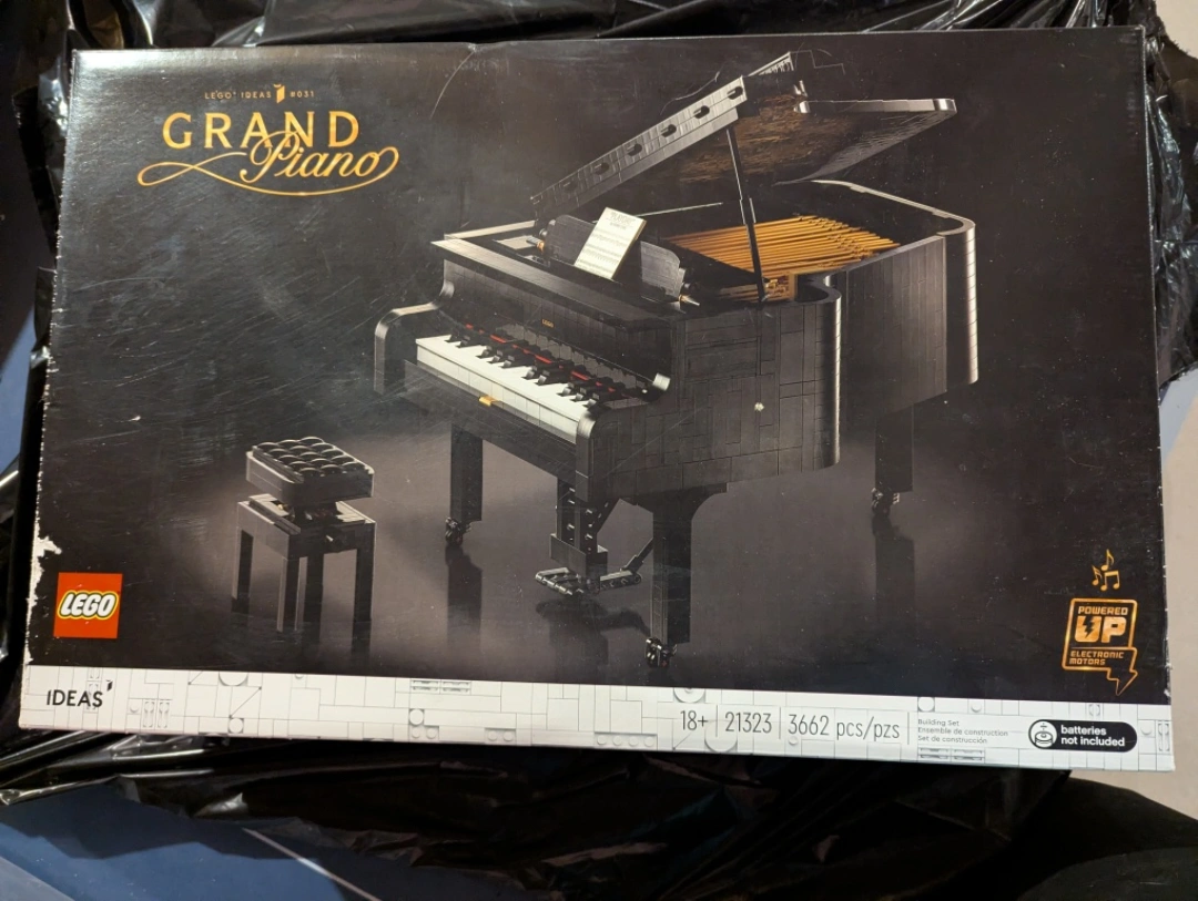 Selling a LEGO Ideas Grand Piano set (number 21323). It's an 18+ set and features electronic motors for a powered-up experience. Please note that batteries are not included. It's a really cool and detailed set for LEGO enthusiasts!
