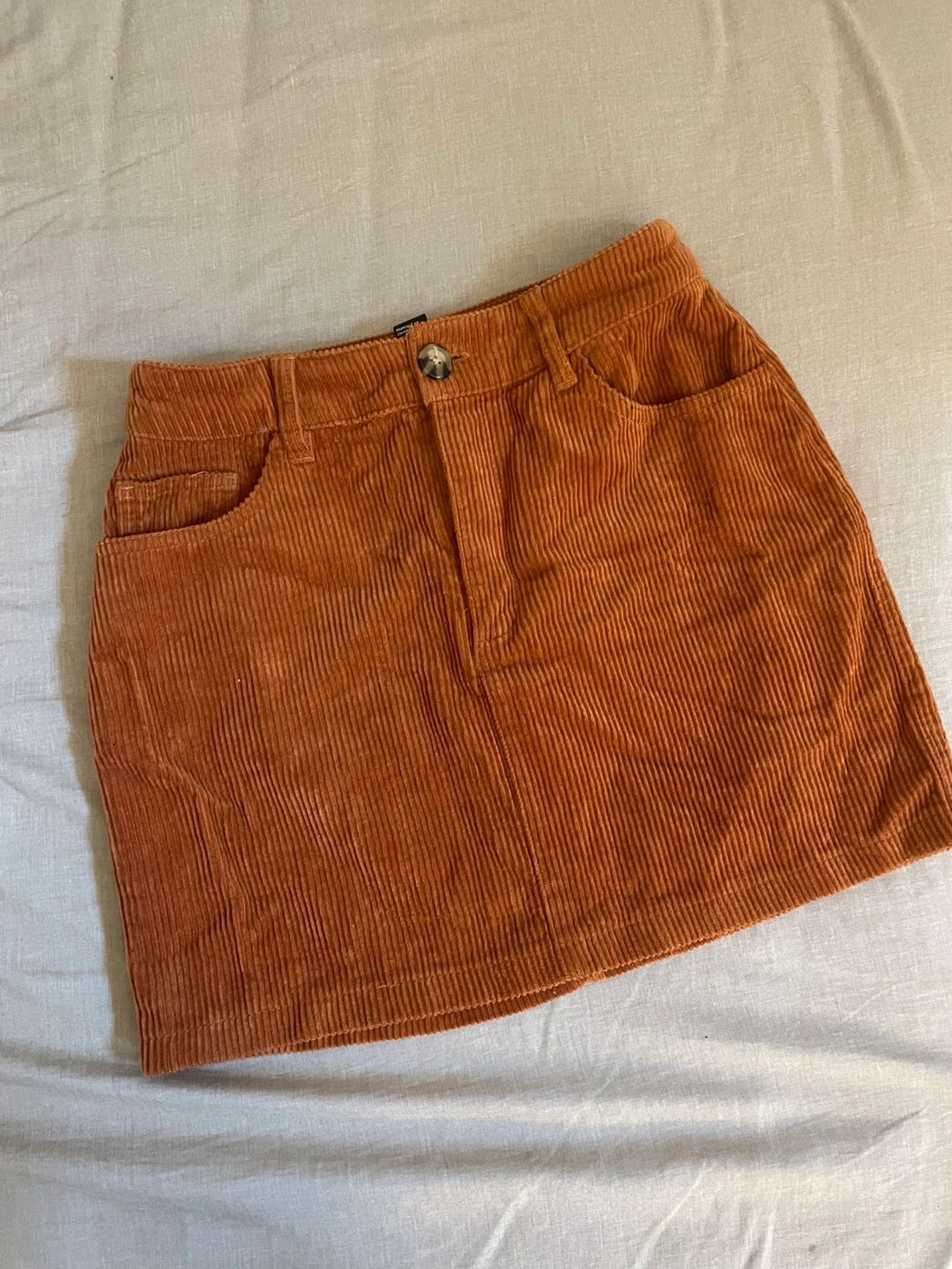 Selling a cute Forever 21 corduroy mini skirt! It's a size small and in great condition. The skirt is a lovely brown colour and has a classic corduroy texture. Perfect for adding a bit of retro flair to your wardrobe!