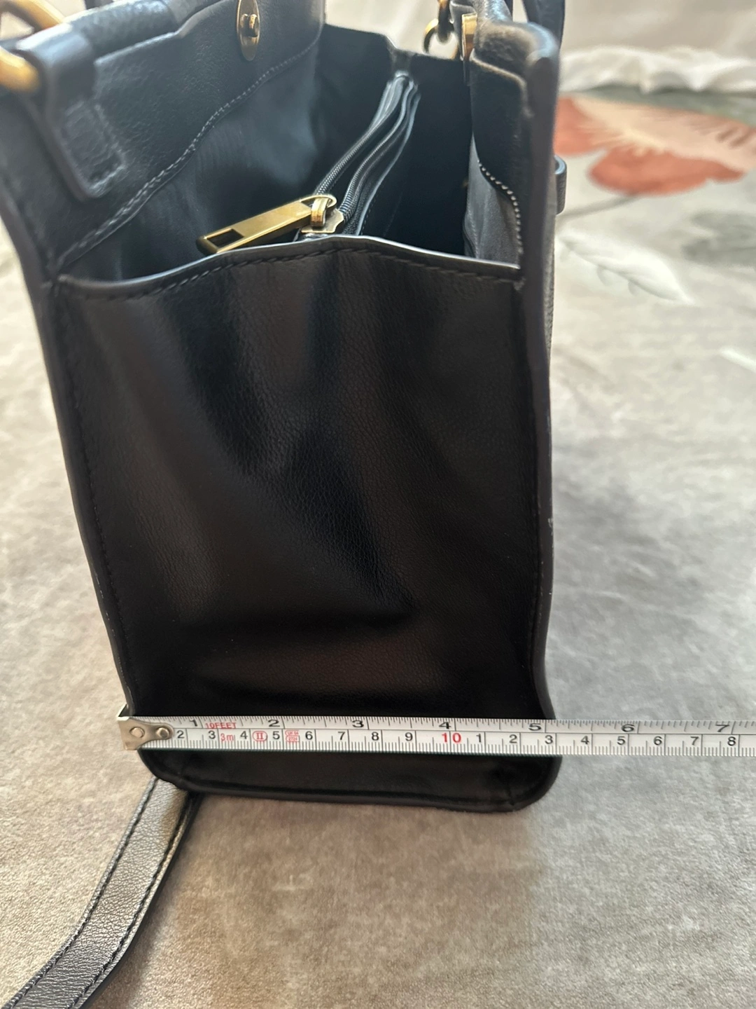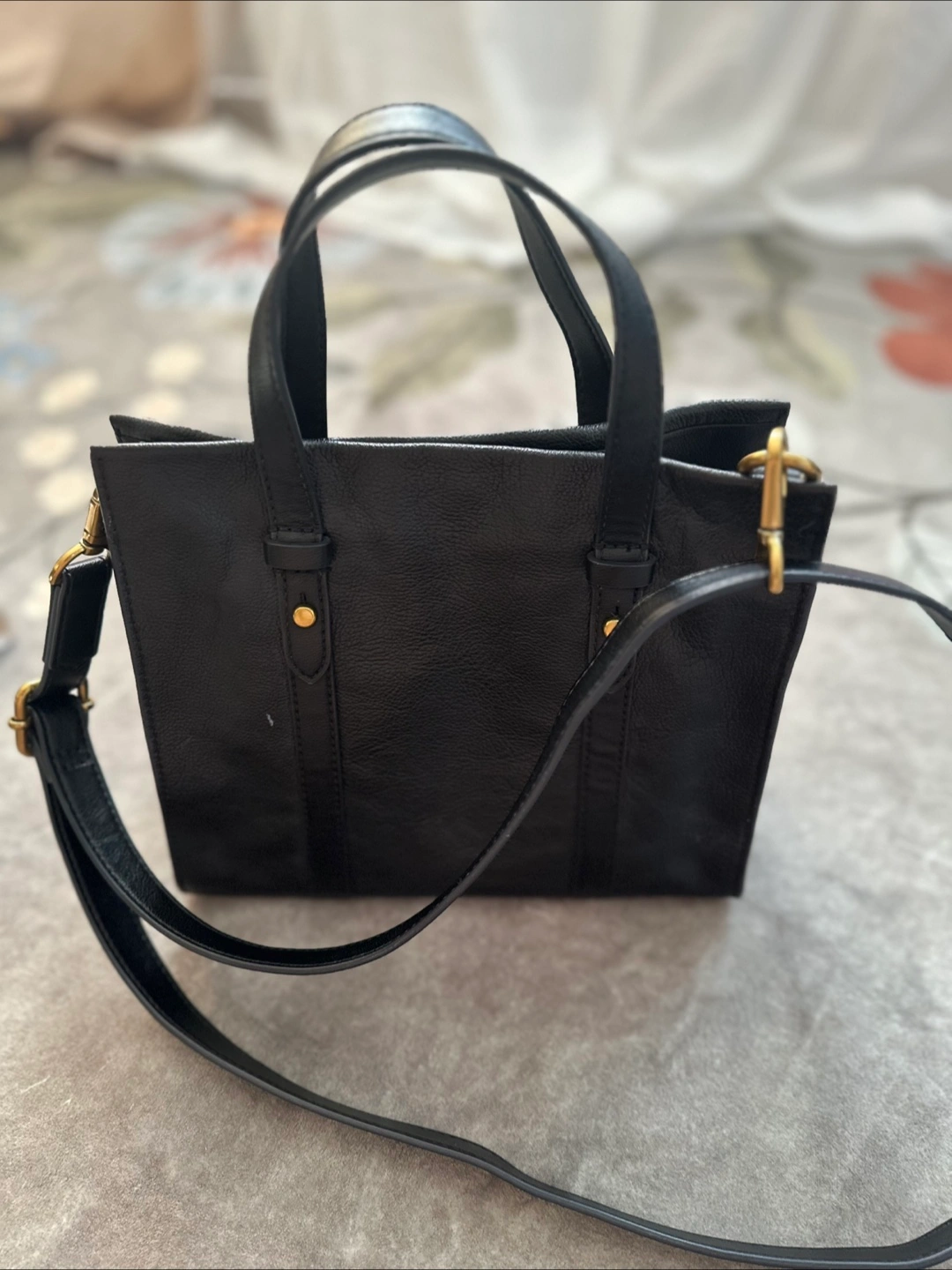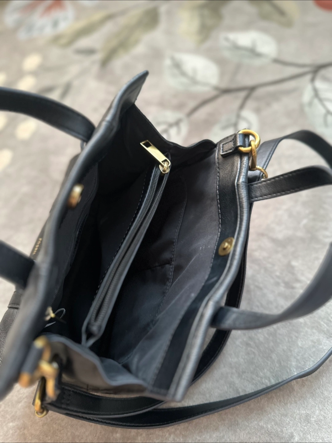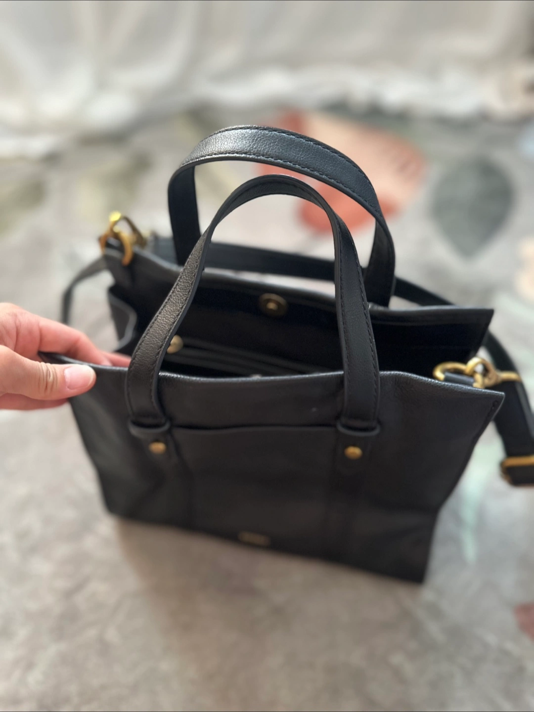 Selling a Fossil black leather handbag! It's in great condition and perfect for everyday use. The size is about 10 inches in length and 8 inches in height.