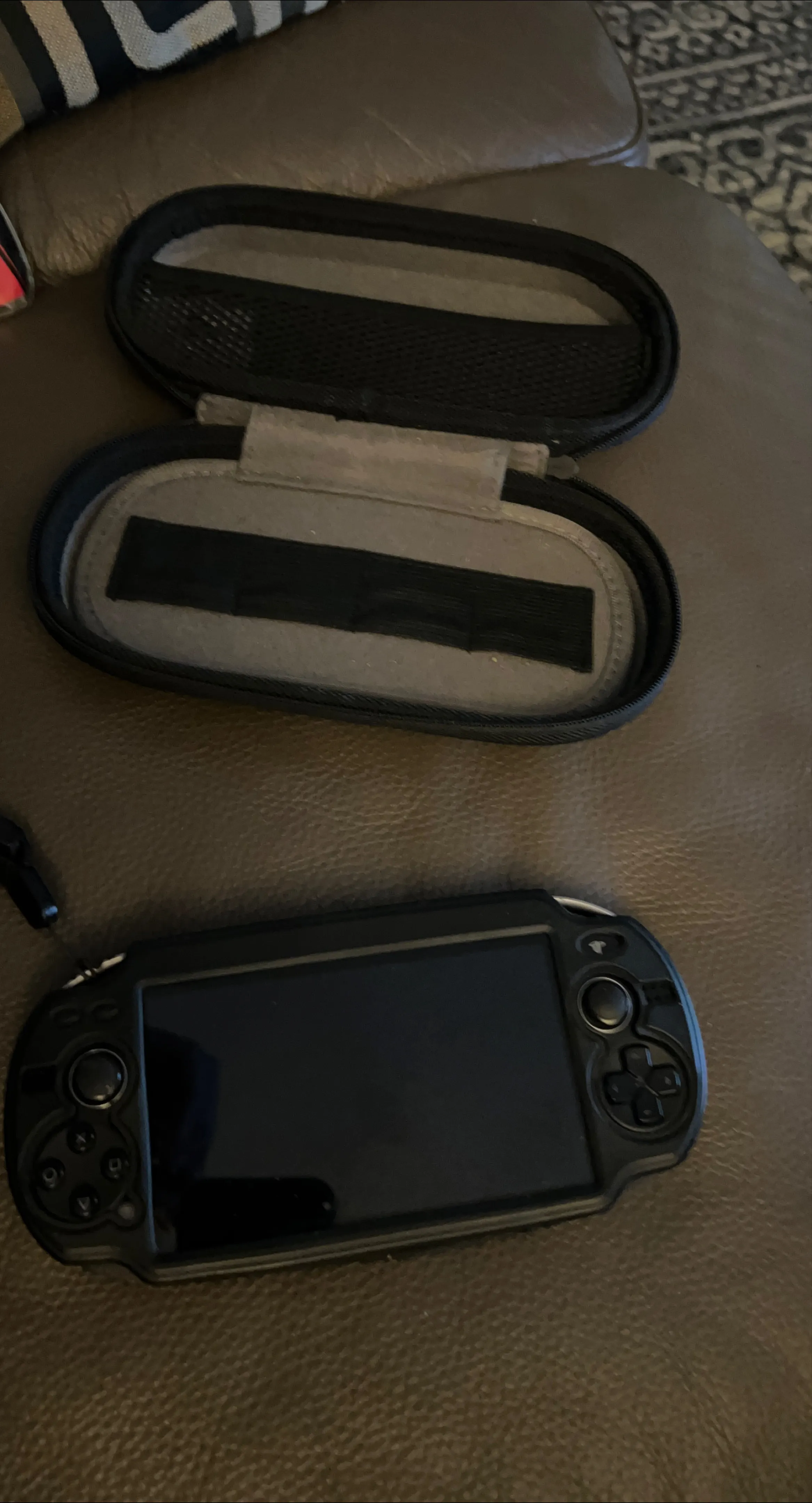 Do not have charger or has not turned on . It’s a gamble. Perfect condition Selling a pre-owned PlayStation Vita (PS Vita) in black. It comes with a protective case to keep it safe on the go. Great for gaming on the move!