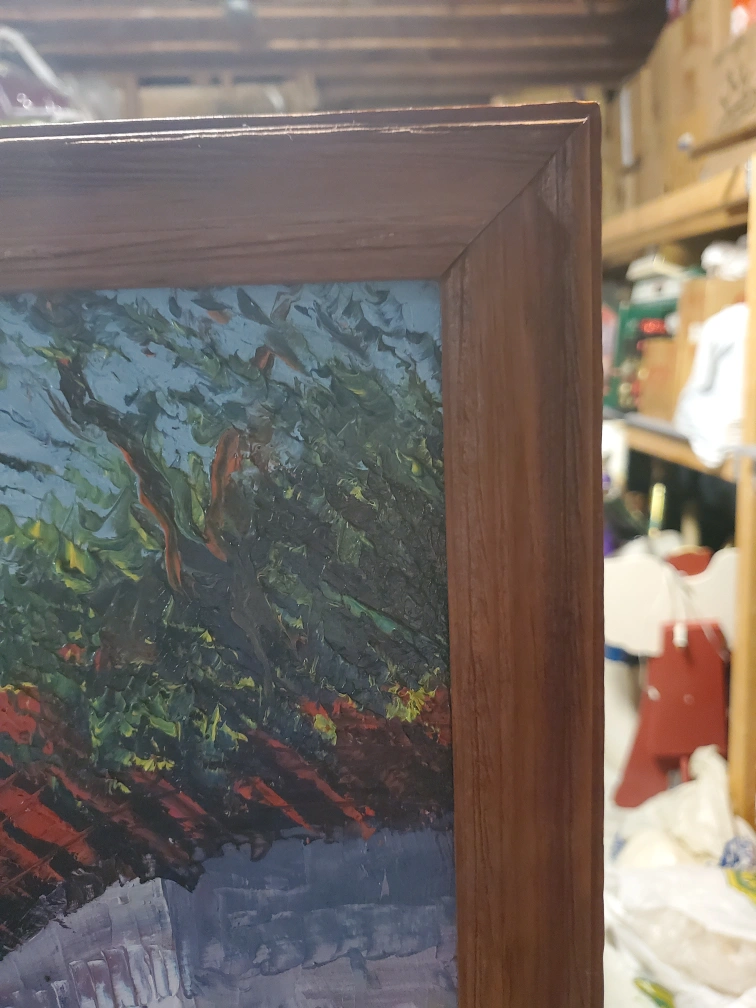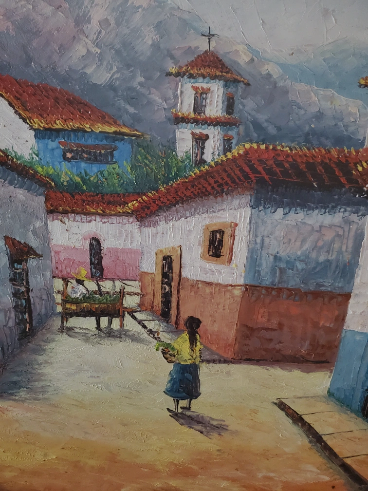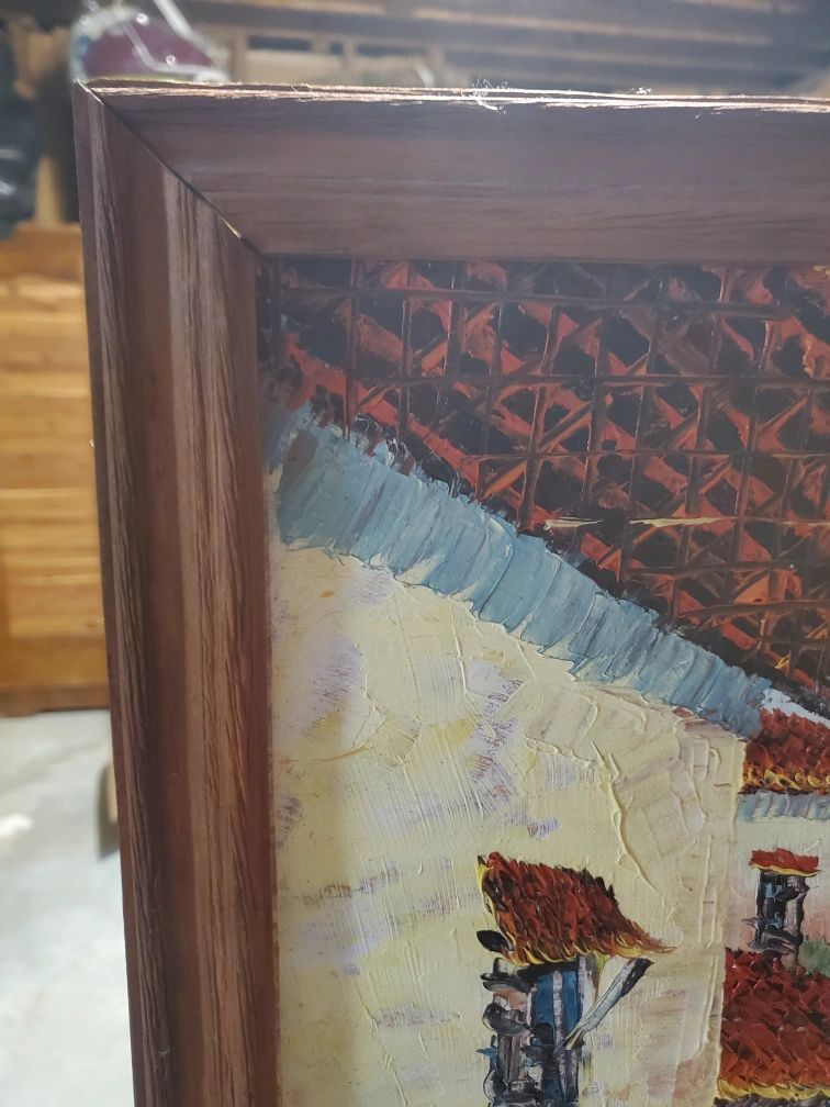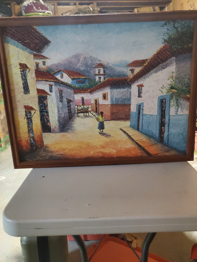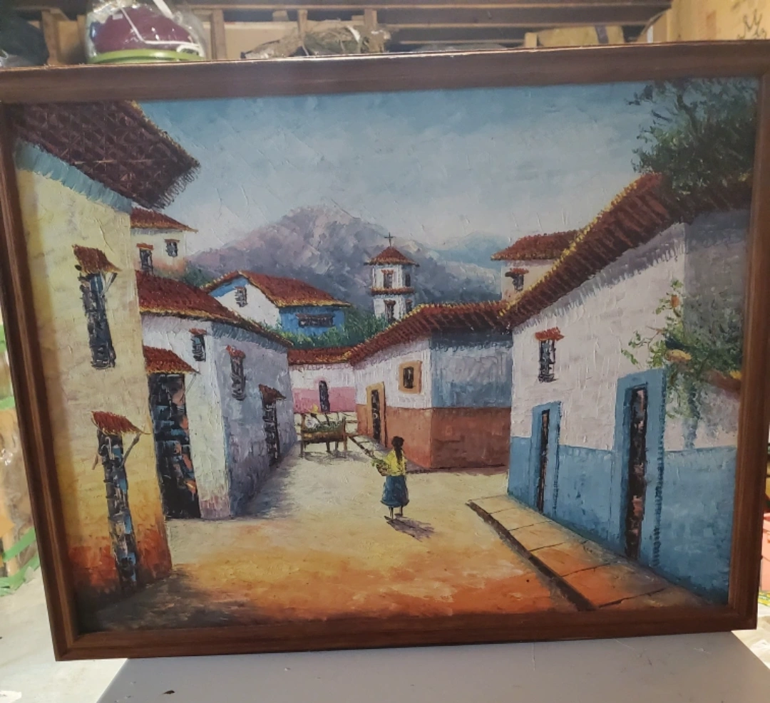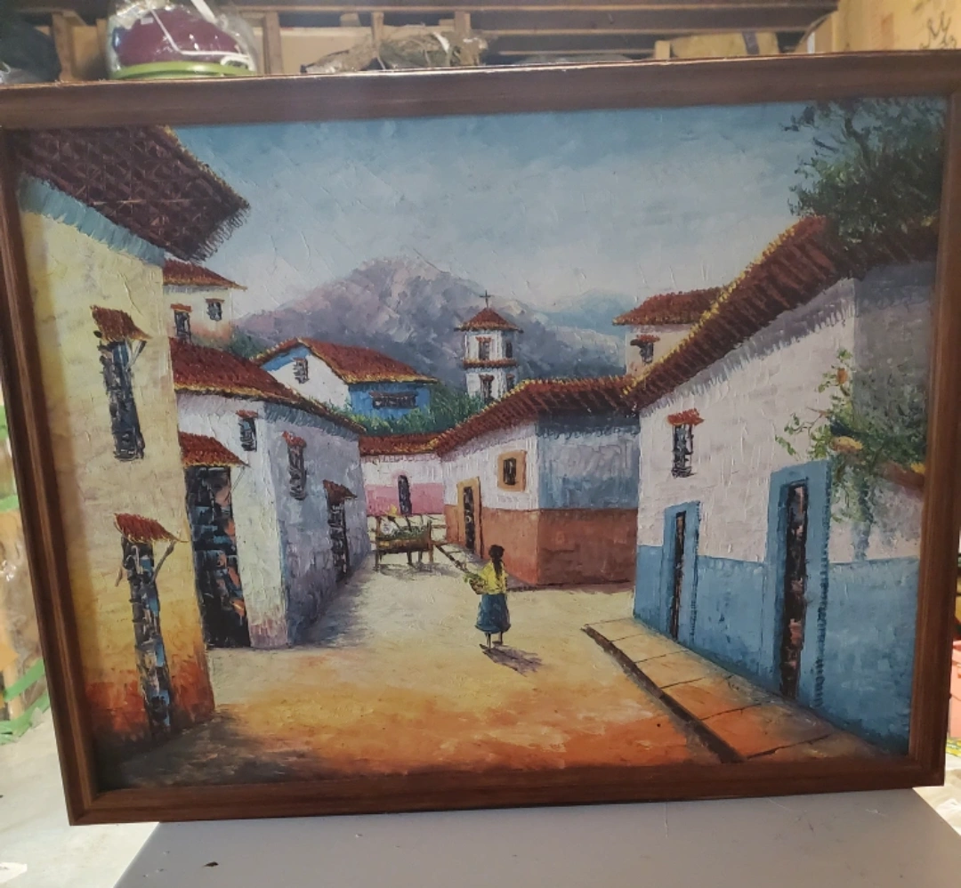 Framed Village Scene Painting