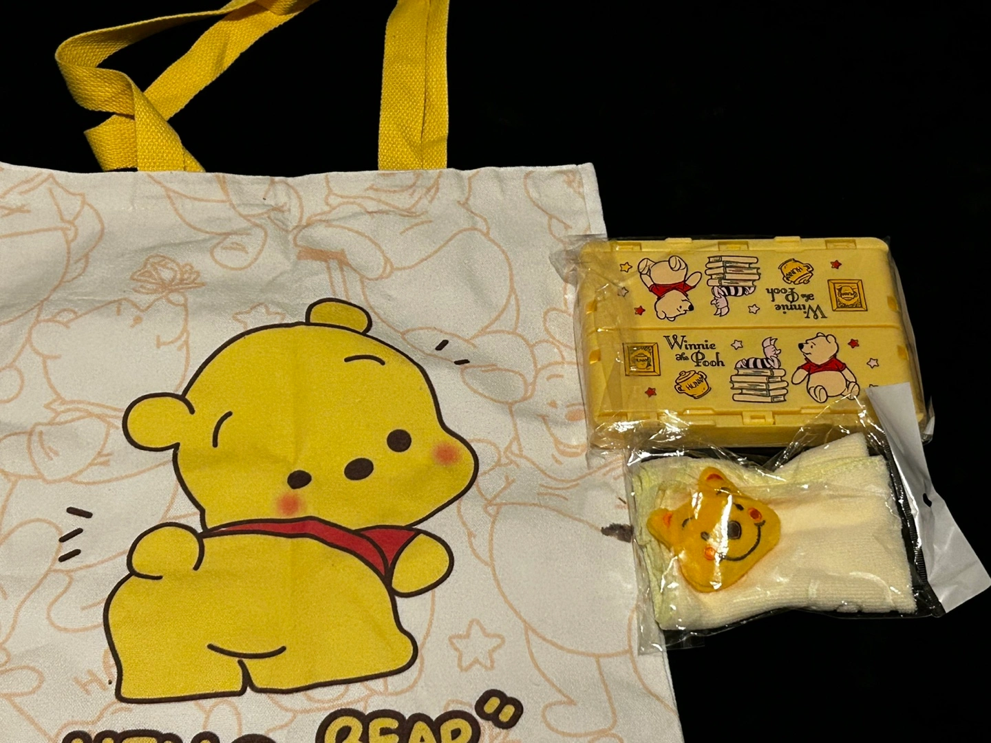 115Super cute Winnie the Pooh set! Includes a tote bag, a bento box, and a small towel. Perfect for any Pooh fan!