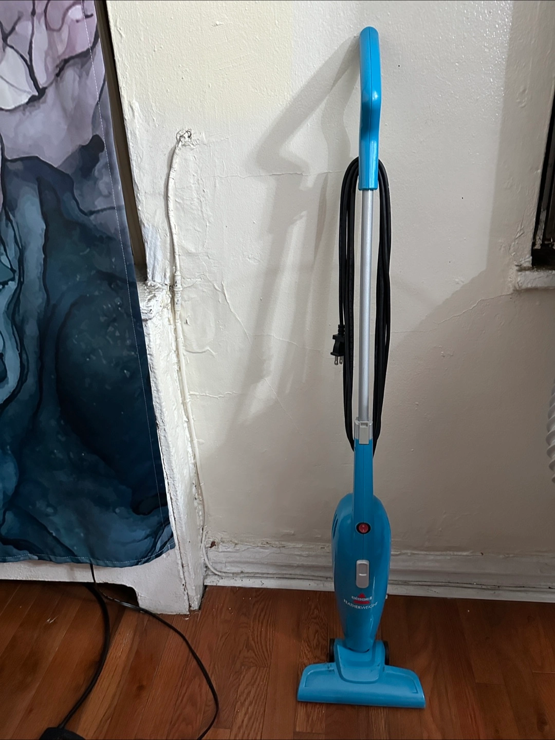Selling a Bissell Featherweight Stick Lightweight Bagless Vacuum in blue. It's lightweight and easy to use for quick cleanups. Perfect for small spaces and hardwood floors.