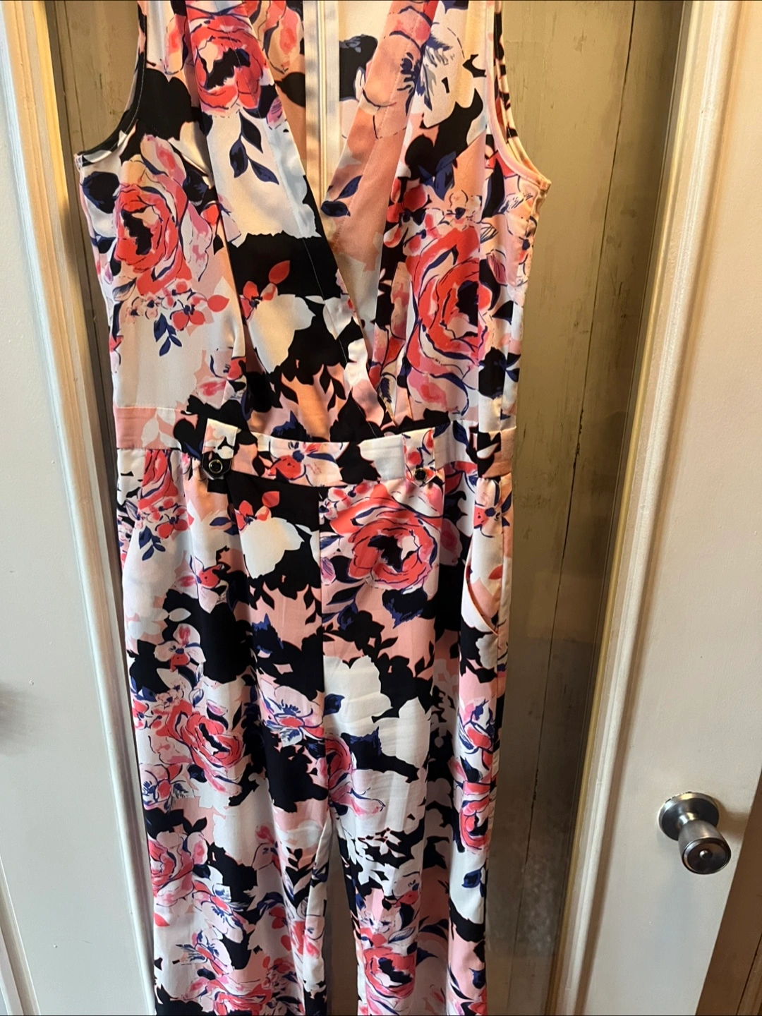 Here's a lovely floral print jumpsuit! It features a flattering V-neck and a comfortable fit, perfect for a day out or a casual evening. The floral pattern is eye-catching and stylish, making it a great addition to your wardrobe