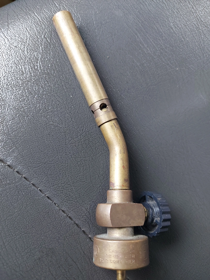 919Selling a used brass blow torch. It's designed for use with a 14.1 oz container. A great tool for various heating and soldering tasks