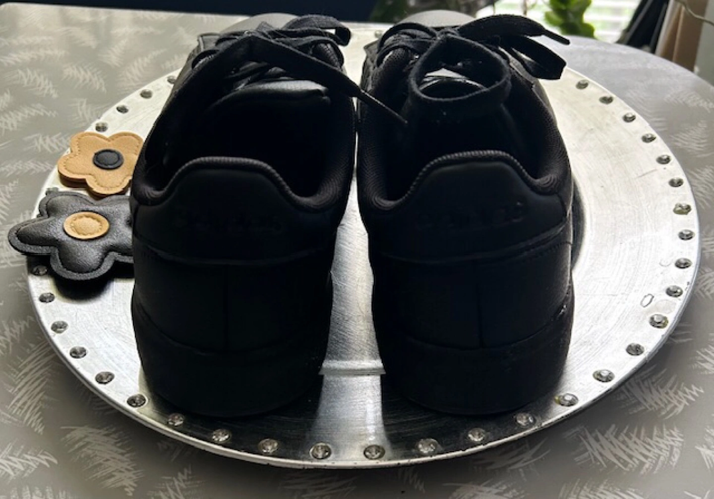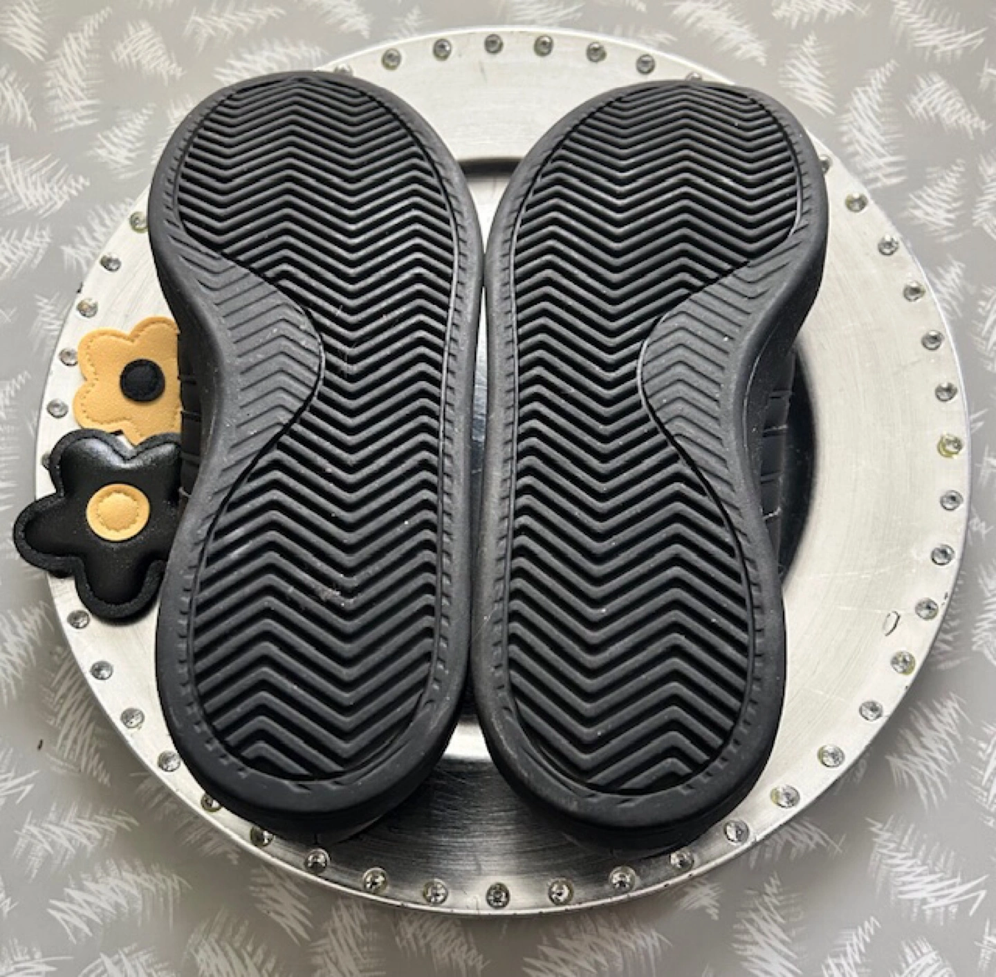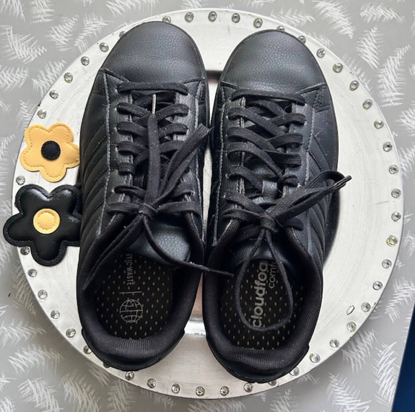Selling a pair of Adidas Grand Court Base sneakers in black. They're in great shape and ready for a new home! The shoes feature the classic Adidas three-stripe design and a comfortable fit. Perfect for everyday wear or hitting the gym. These shoes have only been worn a few times indoors for a dance recital and a couple of rehearsals 🤩