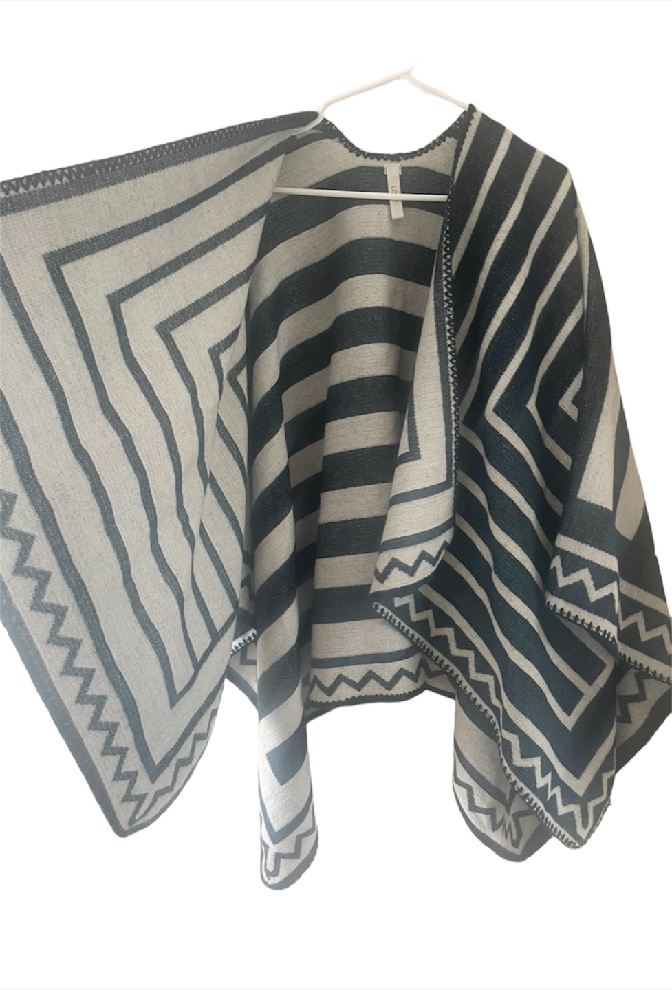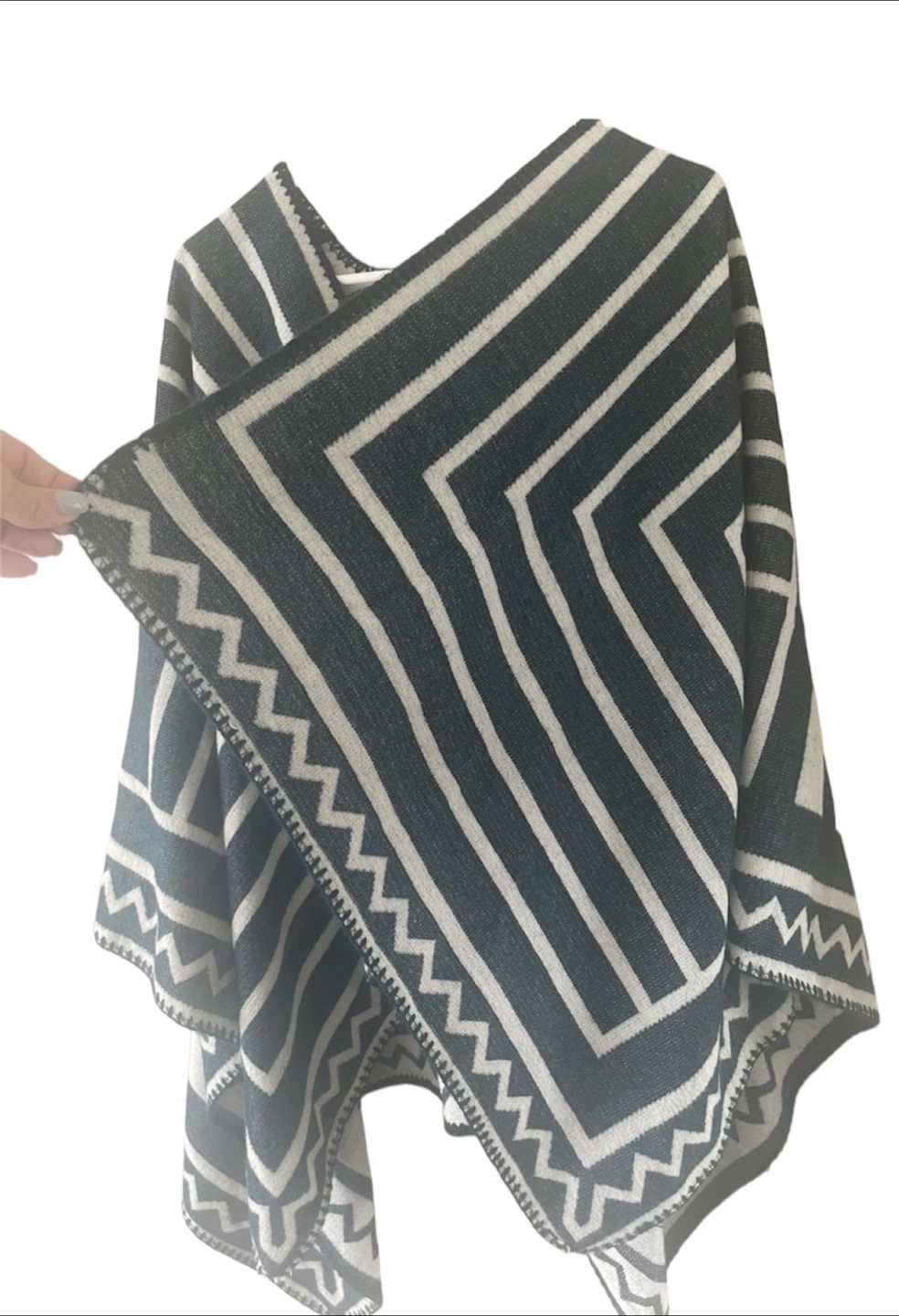 Poncho style cape. with geometric pattern. Fits all sizes.