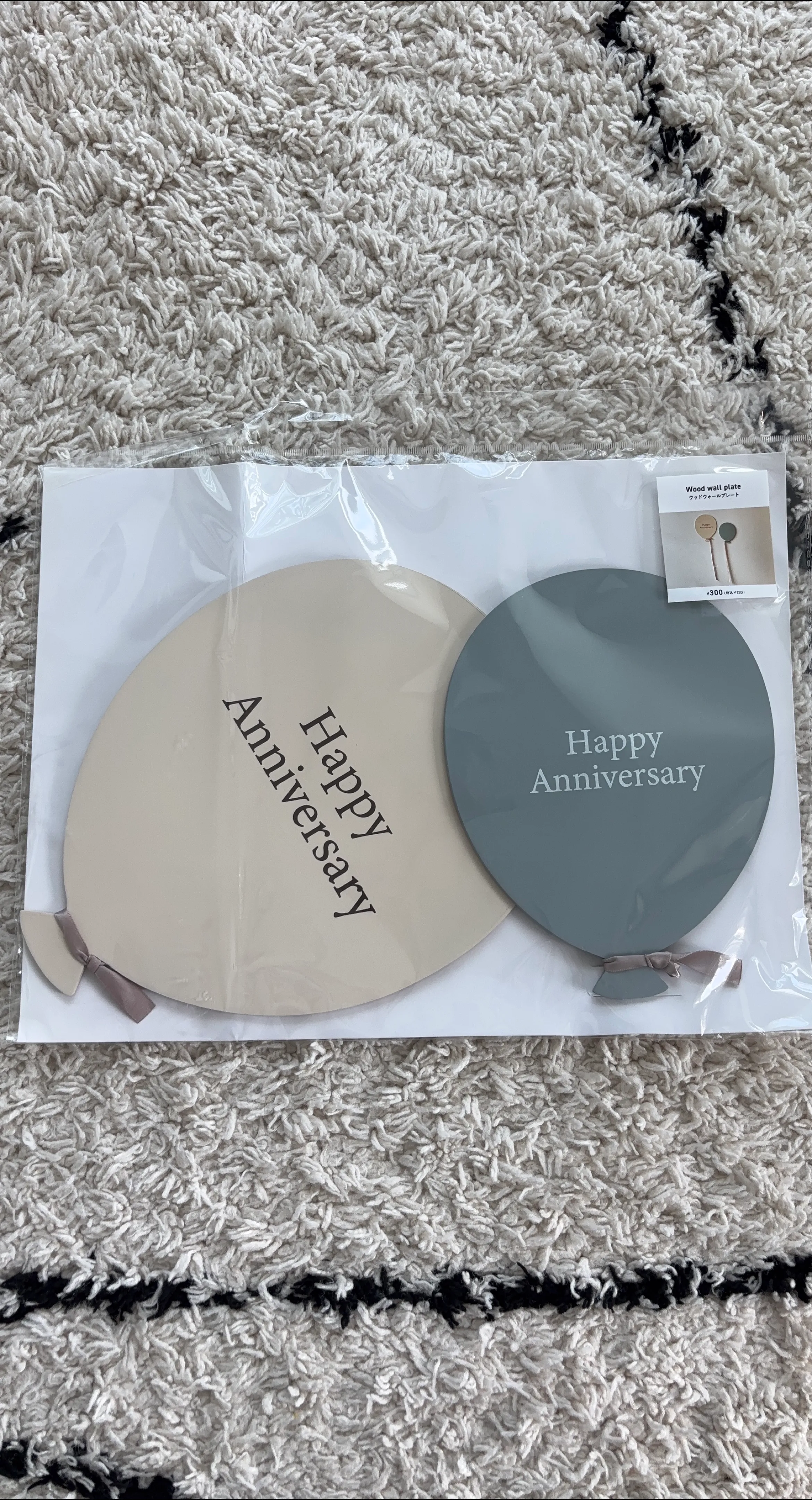 Selling a cute wood wall plate decoration, perfect for a happy anniversary celebration! The set includes two balloon-shaped plates, one in a neutral tone and the other in a soft grey, each with a sweet ribbon detail. It's still in its original packaging and ready to add a touch of charm to any room
