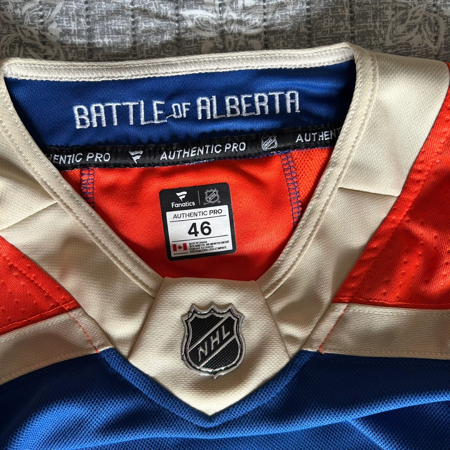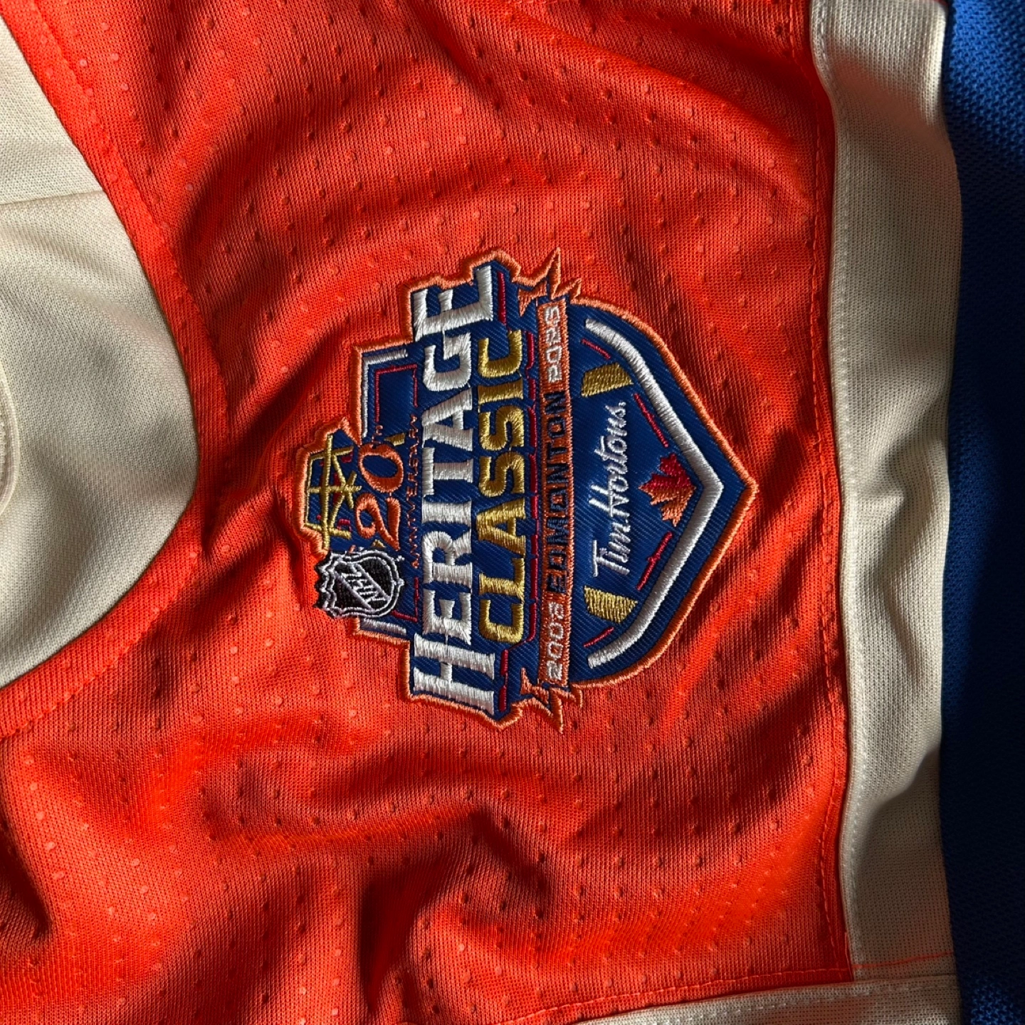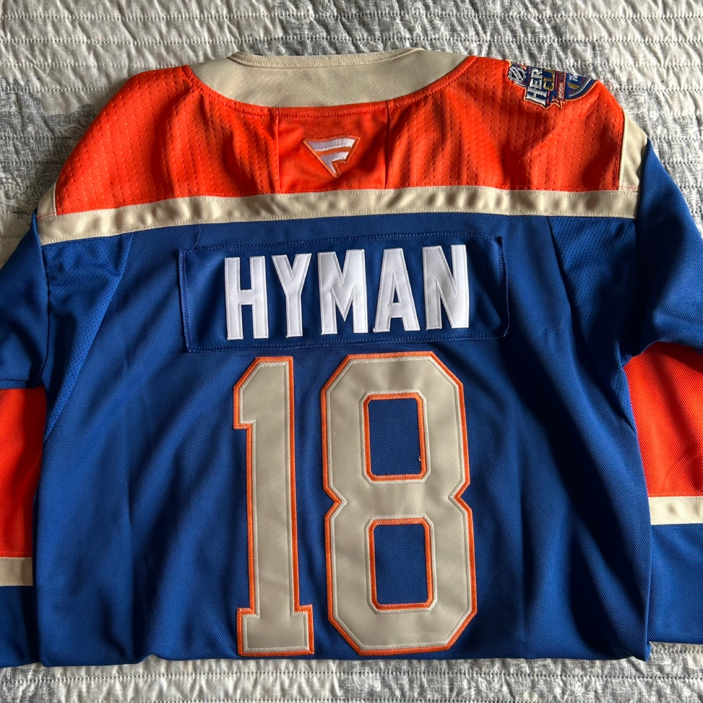Selling an Edmonton Oilers jersey featuring Hyman #18! It's a size 46 and in great condition. The jersey commemorates the 2003 Heritage Classic. Perfect for any Oilers fan!