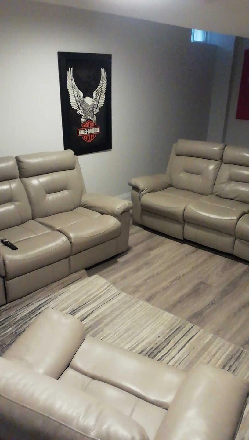 3 PEICE SET RECLINERS SOFA, LOVE-SEAT, CHAIR, (1 YEAR OLD)
