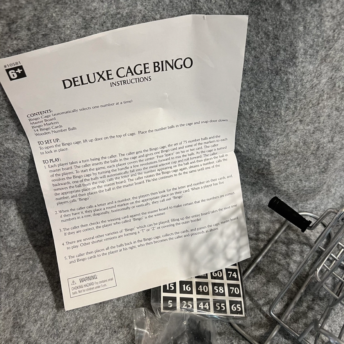 1000+Get ready for some fun with this Deluxe Cage Bingo set! It includes everything you need to play: a bingo cage, master board, bingo markers, bingo cards, and wooden number balls. Perfect for family game night or a friendly get-together