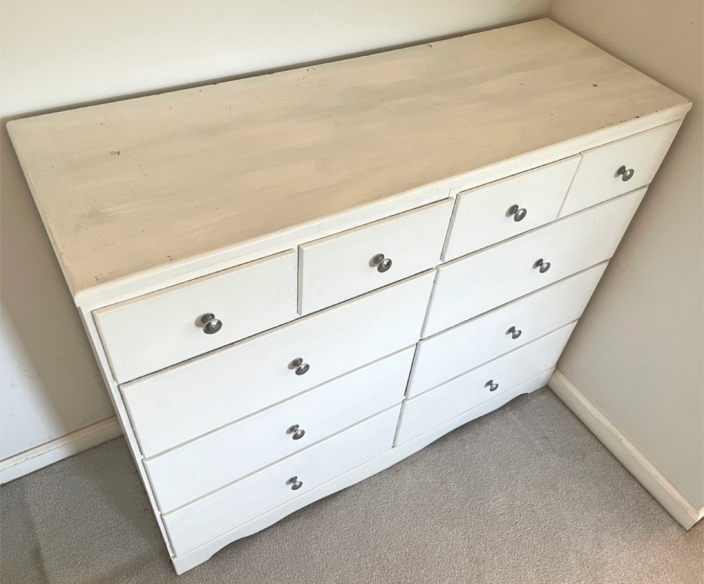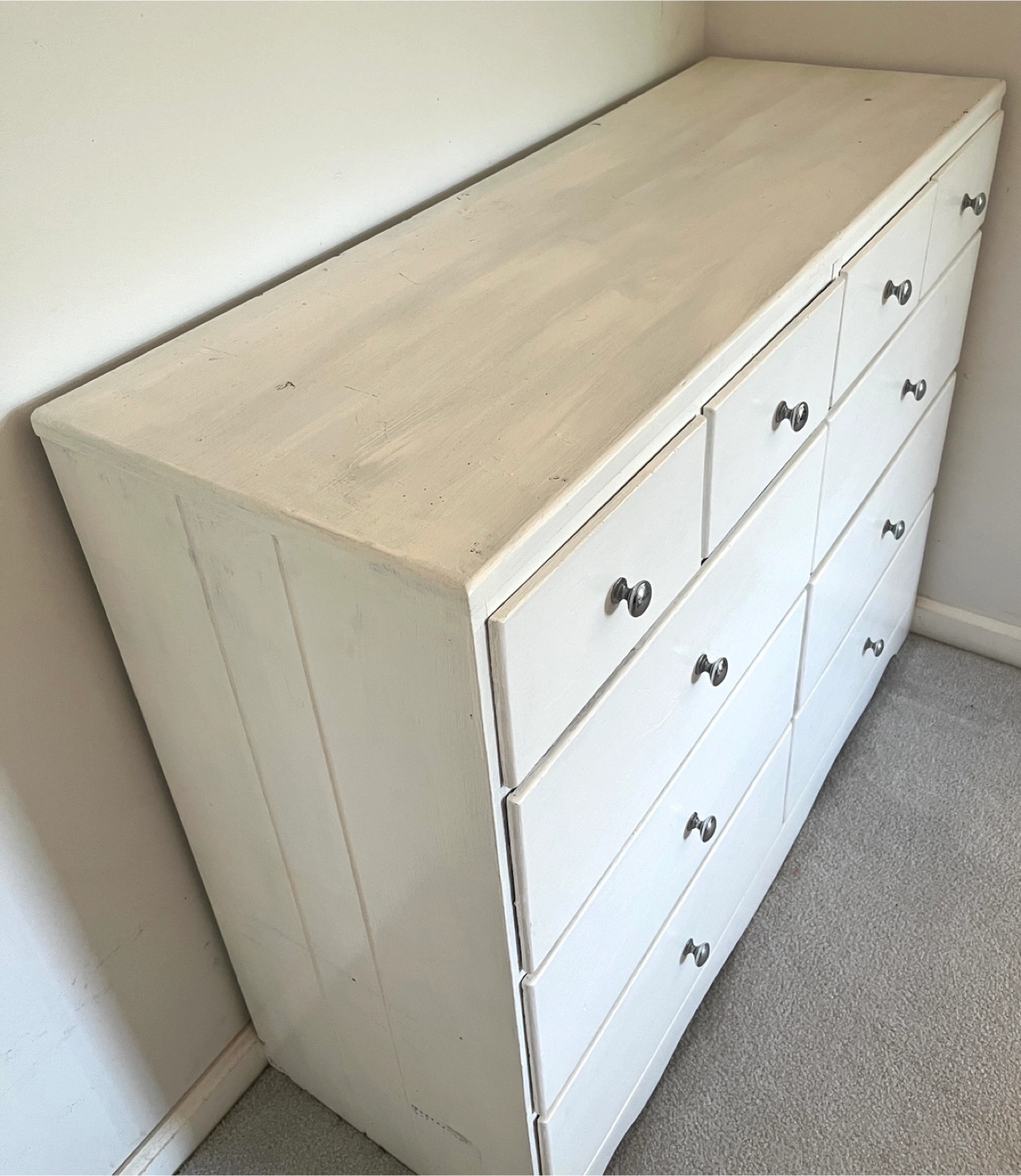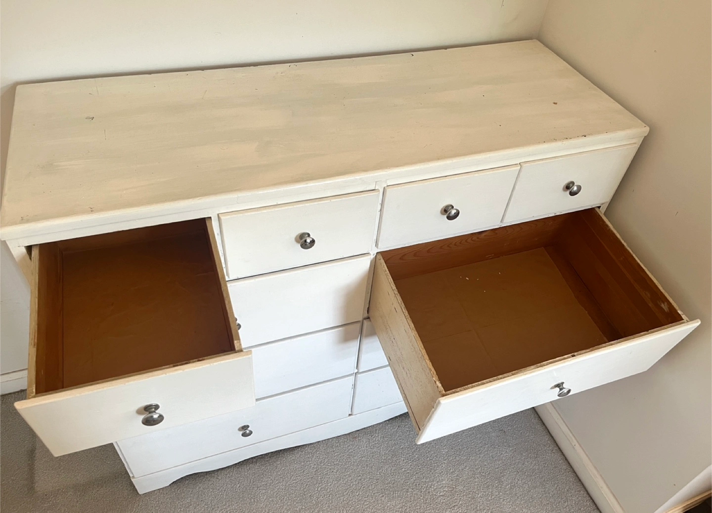 White Wooden Vintage Dresser/Cabinet with 10 Drawers!