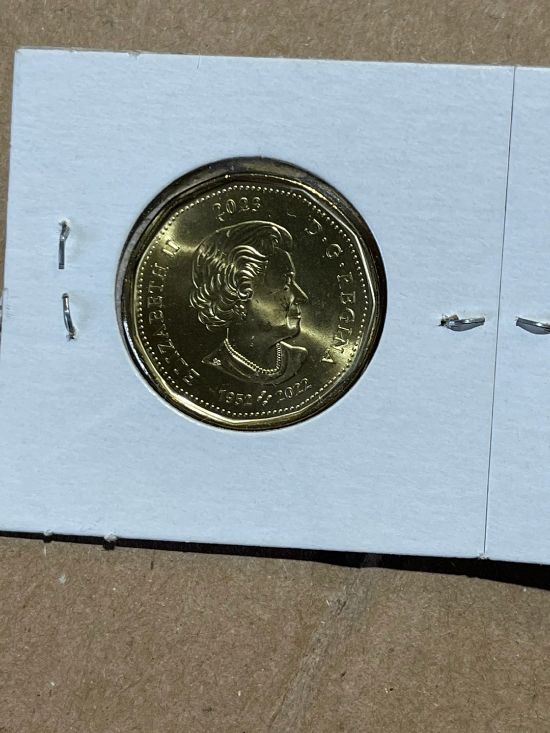 Selling a set of Canadian loonies, including the 2022 Elsie MacGill toonie and the 2023 Queen Elizabeth II loonies. Great for collectors!