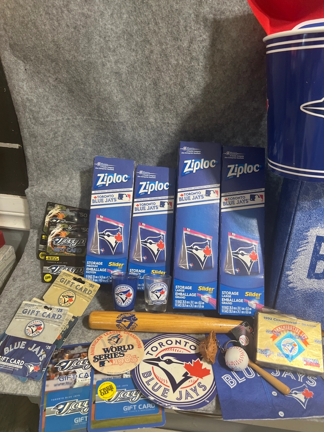 1000+Selling a Toronto Blue Jays memorabilia lot! Includes Ziploc bags, gift cards, shot glasses, and more! Perfect for any Blue Jays fan!