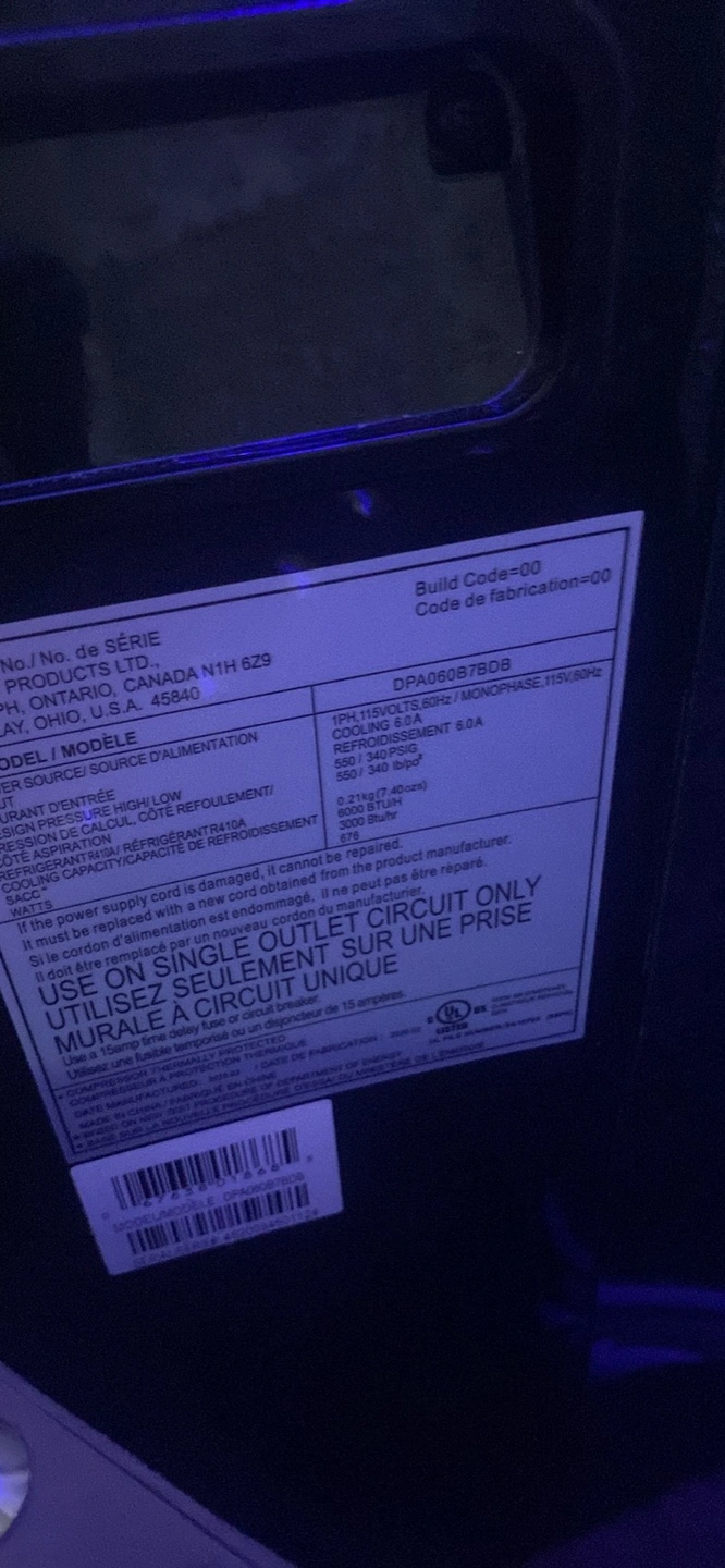86Selling a Danby air conditioner. It uses 120V and 5.0A.