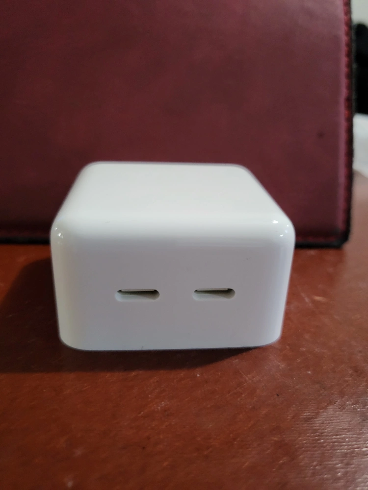 The 35W Dual USB-C Port Compact Power Adapter allows you to charge two devices at the same time, whether you’re at home, in the office, or on the go. The compact size and folding prongs make it easy to pack and store. Apple recommends using it with MacBook Air. You can also use it with iPhone, iPad, Apple Watch, and AirPods.