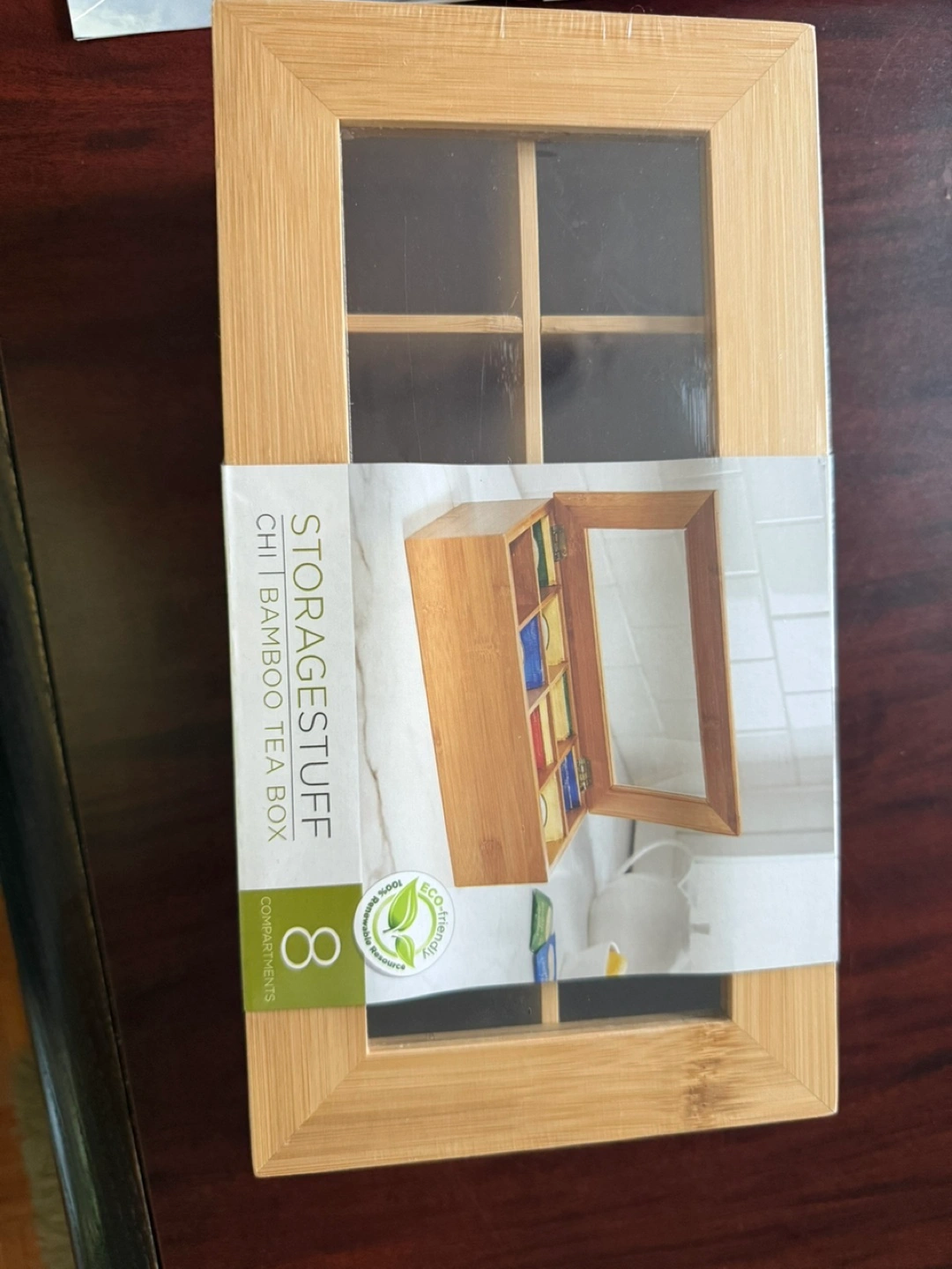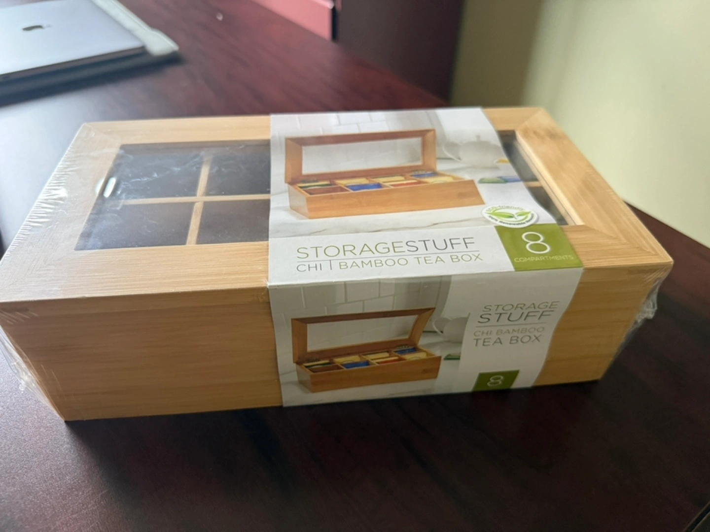 Selling a brand new StorageStuff Chi Bamboo Tea Box! It's perfect for storing and displaying your tea. The box features a lightweight and durable bamboo construction with a large viewing window so you can see all your delicious flavours of tea. It also has 8 storage compartments to help you organize your tea and see at a glance when it's time to restock your favourite tea bags. Dimensions are 31 cm x 16.5 cm x 9.5 cm tall (12.25" x 6.5" x 3.75")
