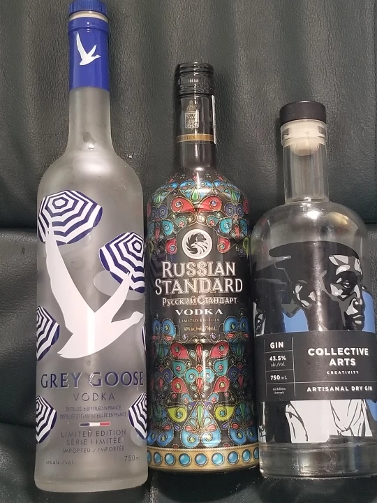 $20 for all 3 empties. I've had these for a while but I'm clearing up space. Grey goose, Russian standard & collective arts. Cool bottles to display,or refill with the respective liquor.