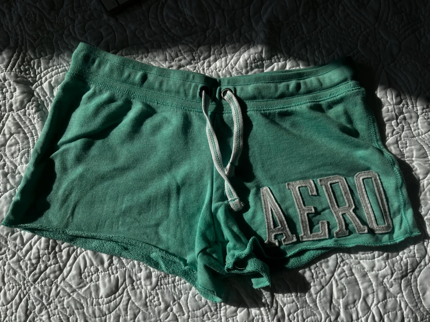 Cute Aeropostale shorts in size S/P. They are in good condition and ready for a new home! The shorts are a nice turquoise colour with a drawstring.