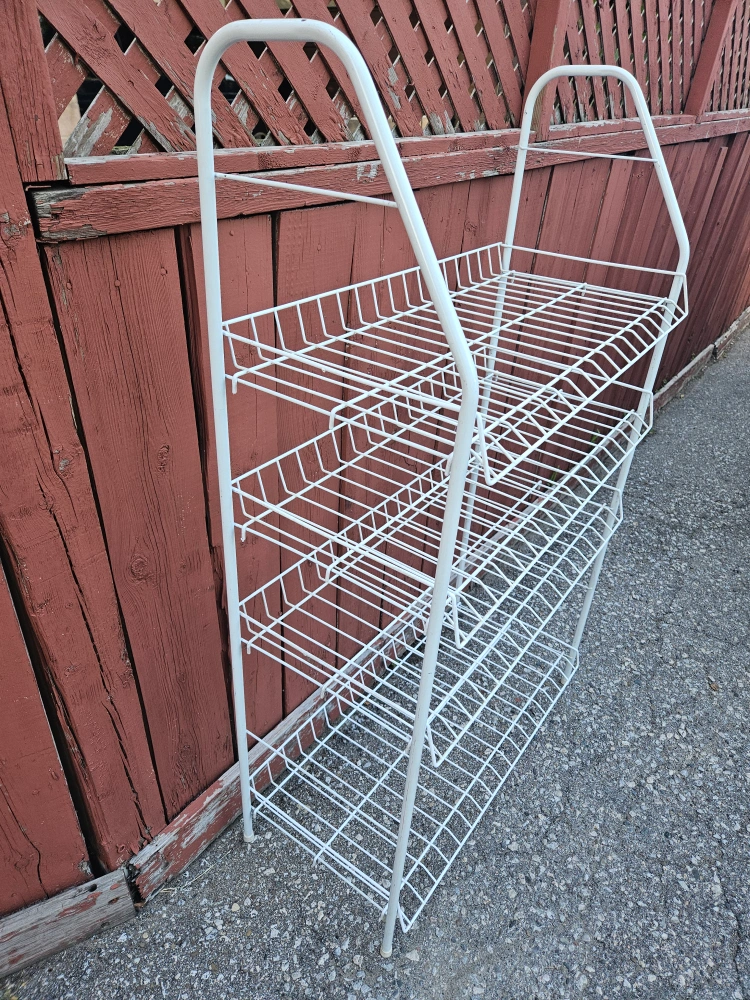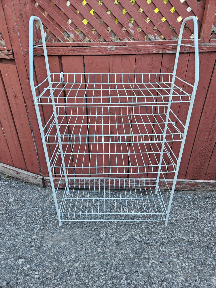 Selling a white wire shelf rack! It's in great condition and perfect for organizing your space. use as shoes rack