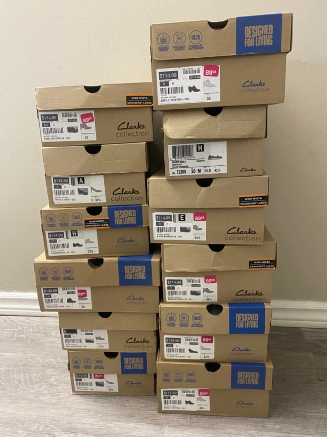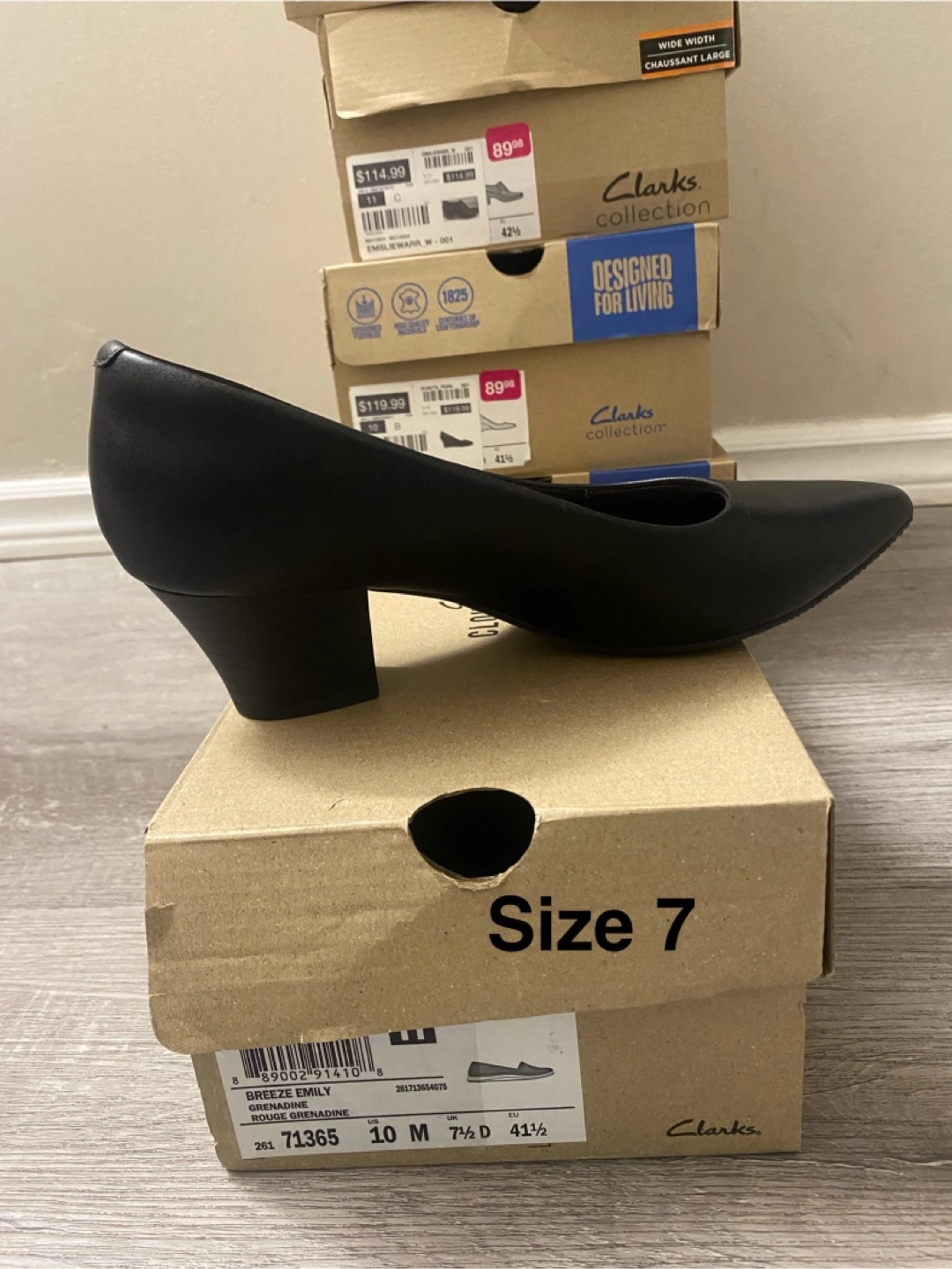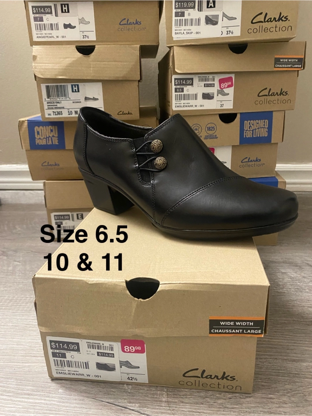 I have a selection of Clarks Collection shoes available in various sizes. Please see the photos for specific styles and sizes. Originally priced around $114.99-$139.99, now available at a great price! Each pair comes in its original box.