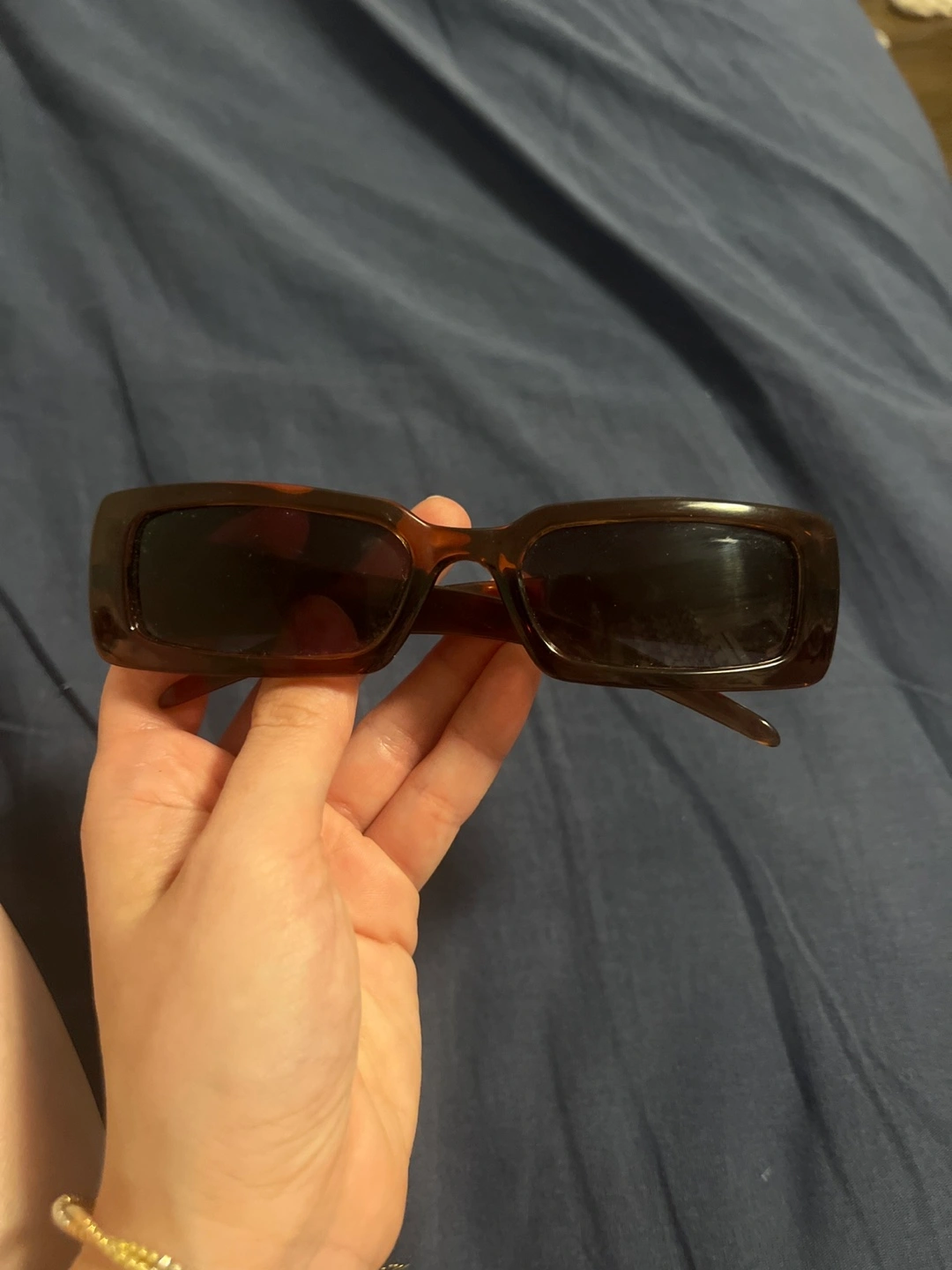 Selling a pair of brown rectangular sunglasses! They're in great shape and ready for sunny days
