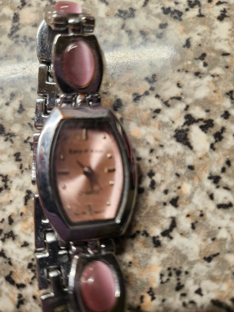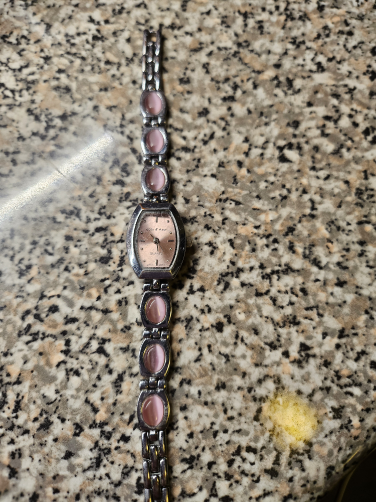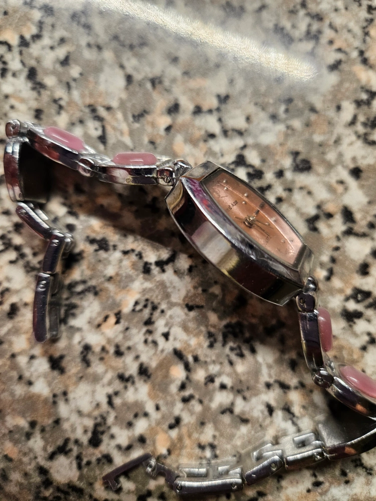 Metal bracelet, Stainless Steel, pink face and bracelet details