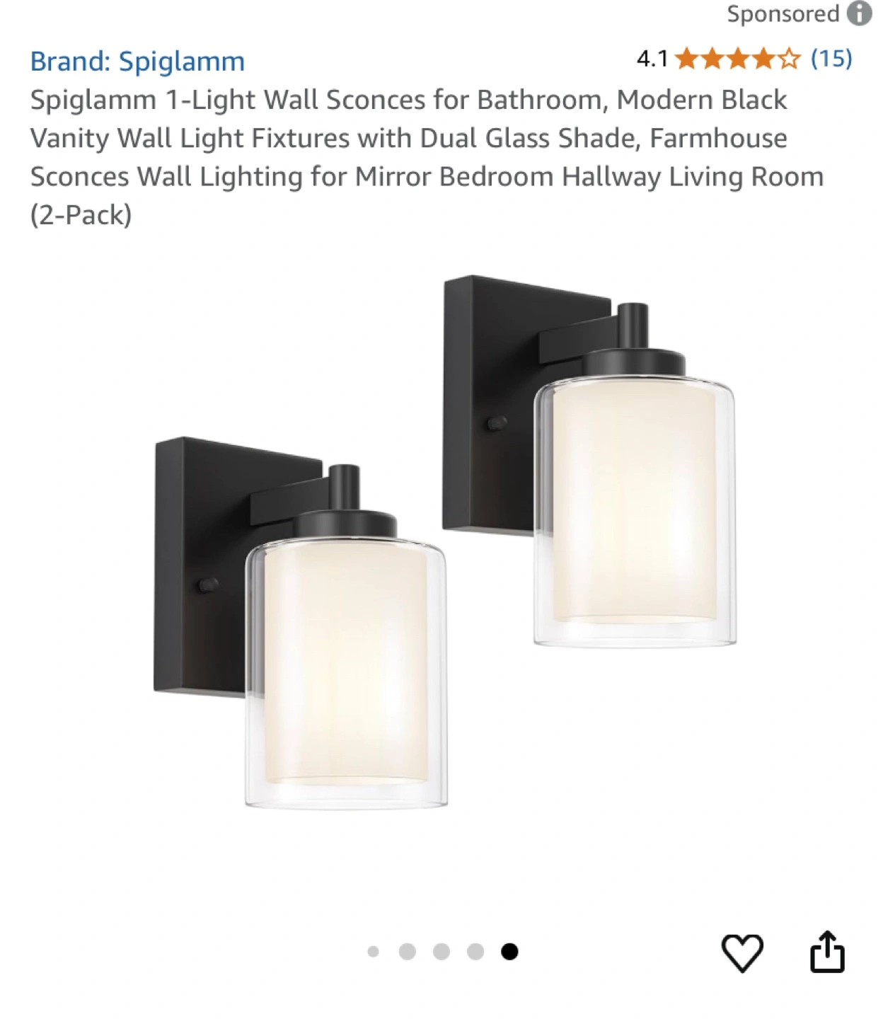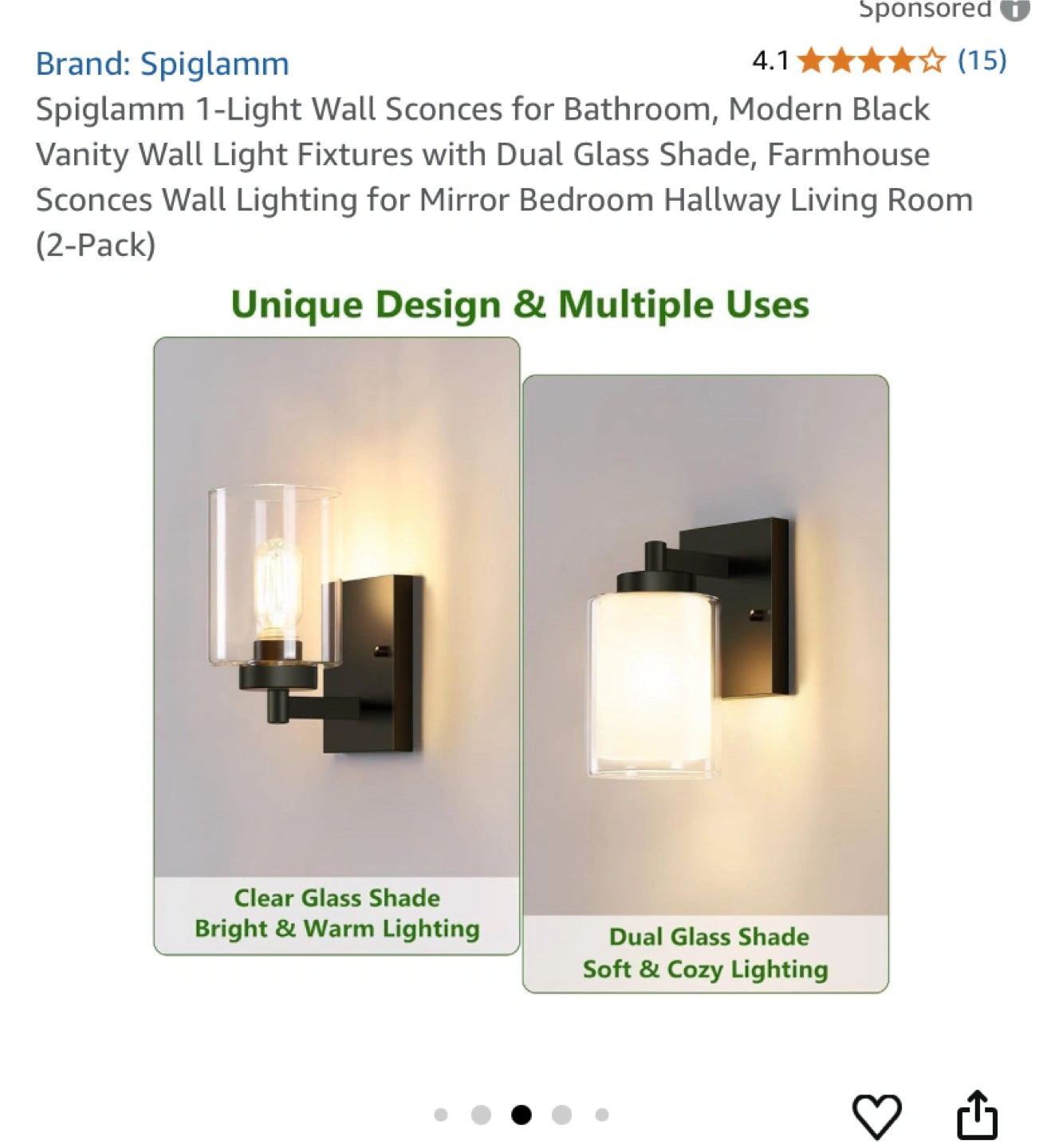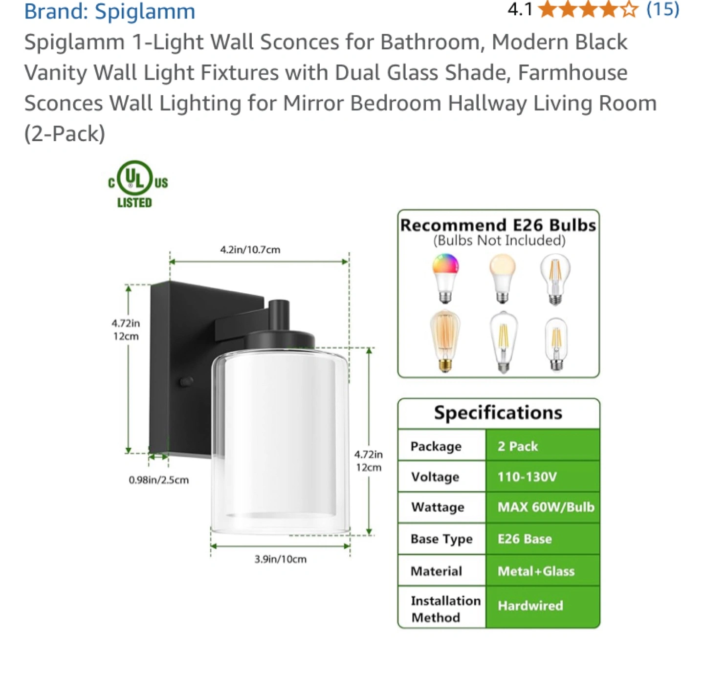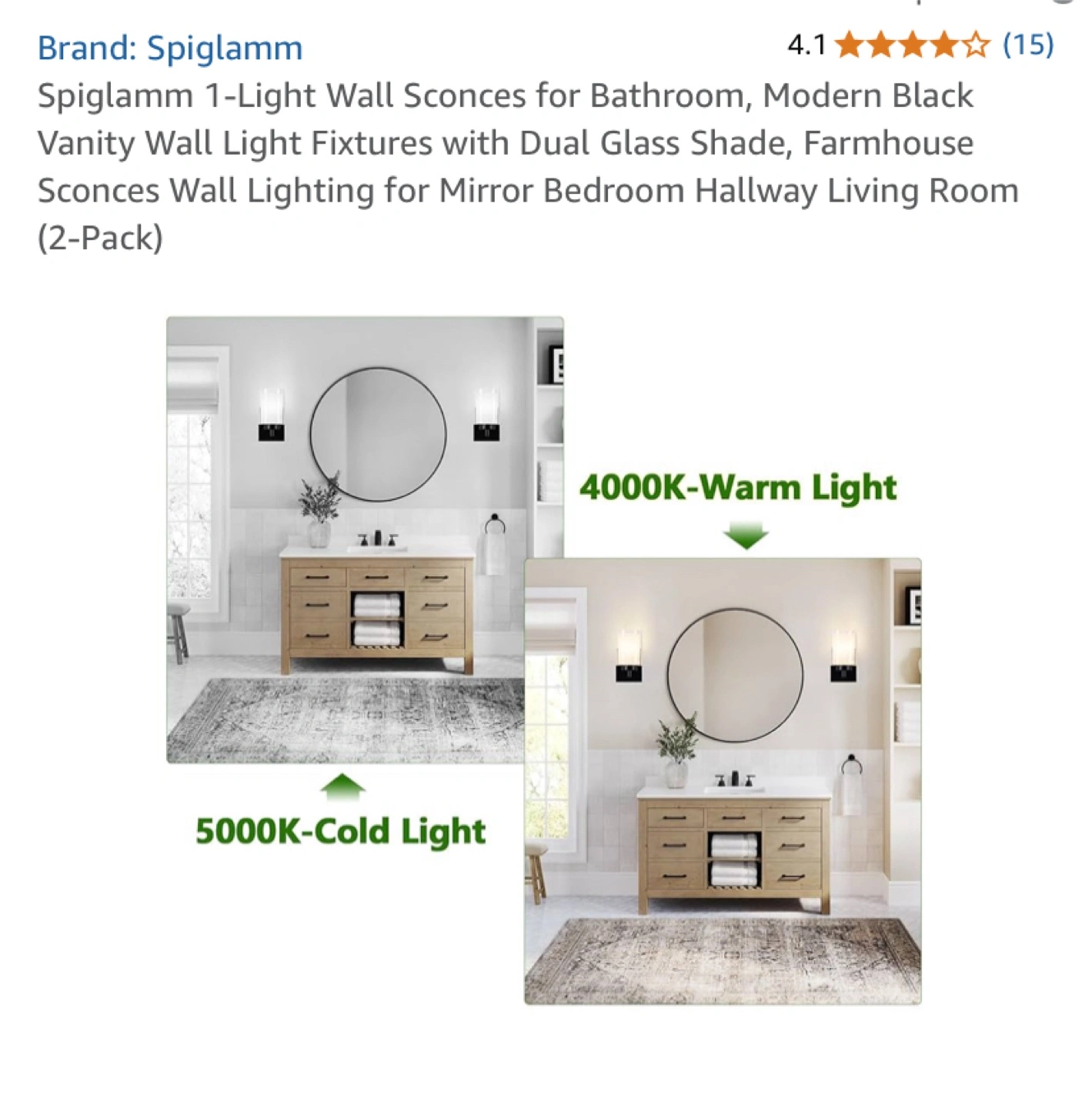 Here's a set of 2 pack Sconces for your bathroom or any room! These modern black vanity lights feature a dual glass shade, perfect for adding a farmhouse touch. They're great for mirror, bedroom, hallway, or living room lighting. The lights offer both 4000K warm light and 5000K cold light options. BRAND NEW IN BOX Pick up Richmond Hill