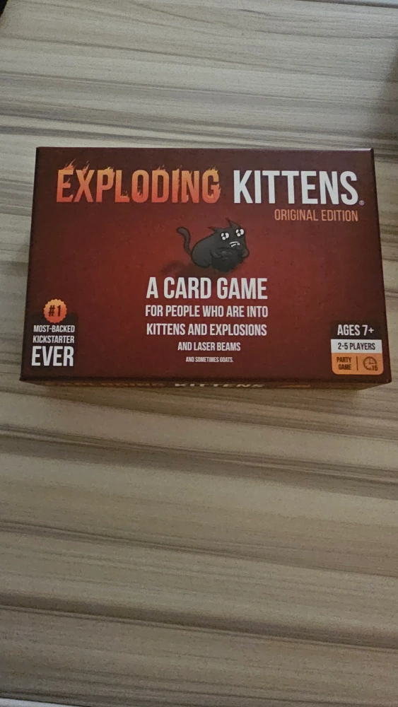 Selling a copy of Exploding Kittens, the Original Edition! It's a card game for 2-5 players, ages 7+. It's the most-backed Kickstarter ever! Great for parties. Mint condition, only used once.