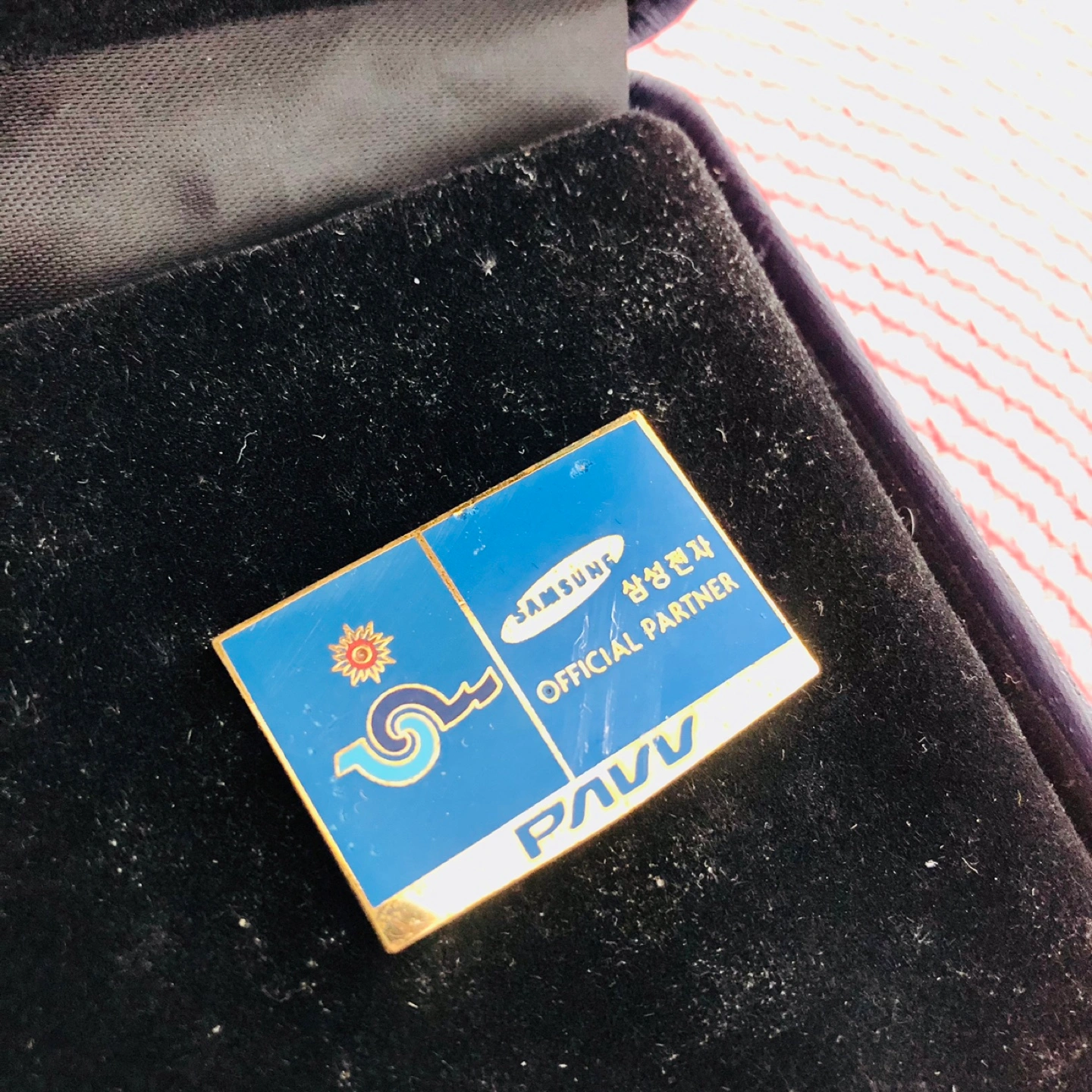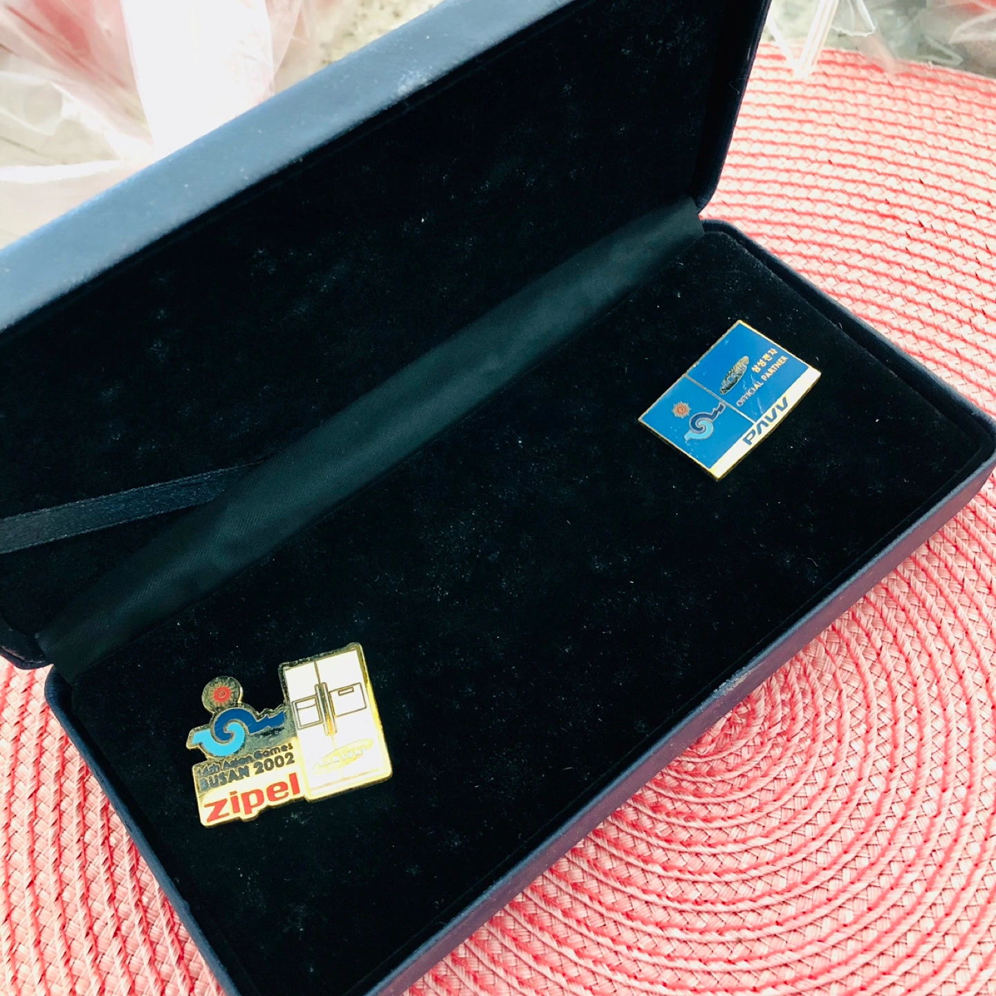 Giving away a set of Samsung commemorative pins from the 14th Asian Games in Busan 2002! The set includes two pins, one featuring the Samsung logo as an official partner and another showcasing the Zipel refrigerator. Comes in its original box!