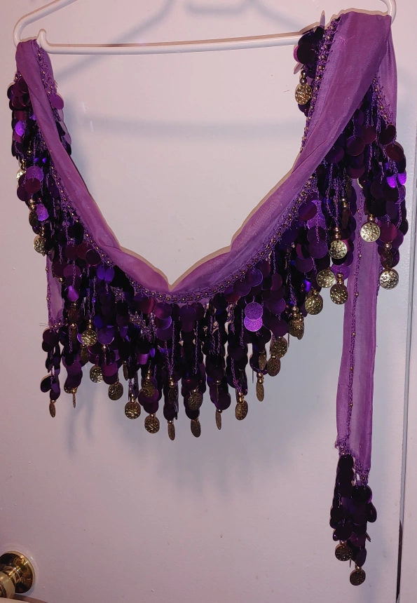 Two (2) Belly Dancing Hip Scarves - Purple, Pink