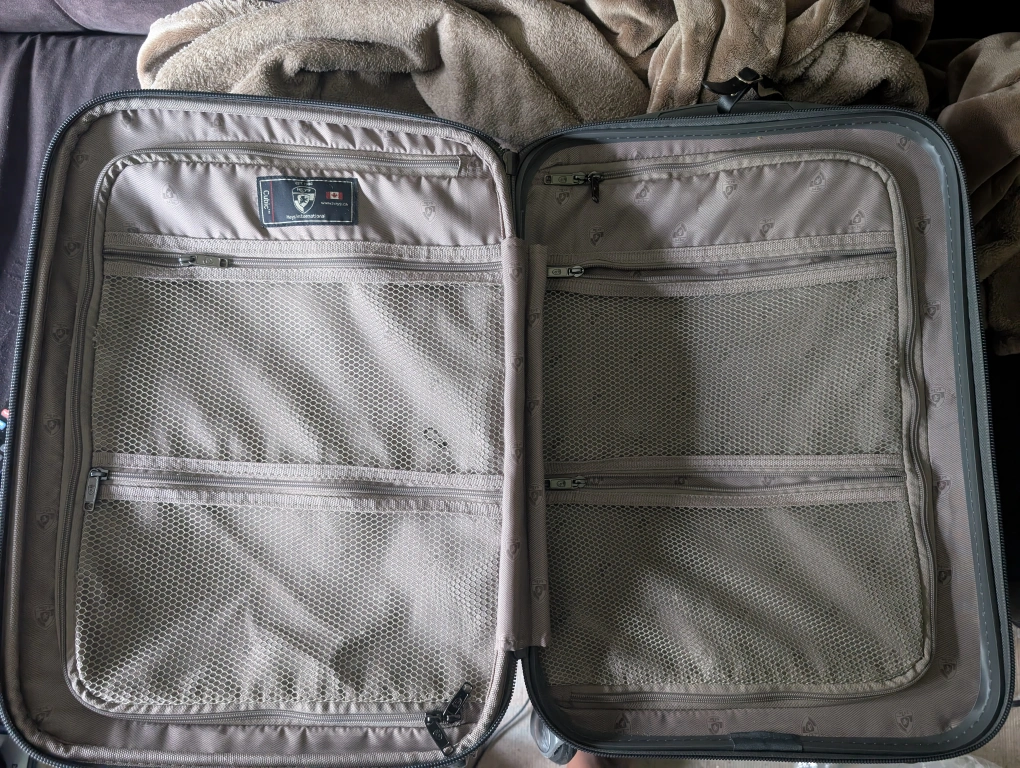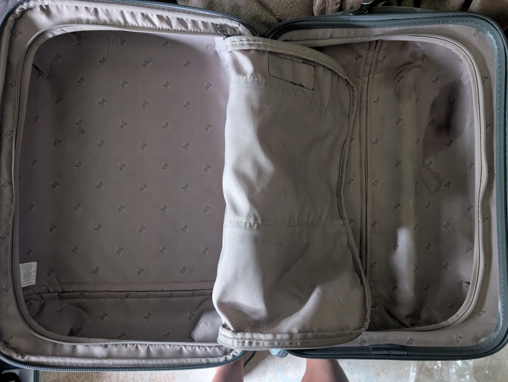 # free cycle giving away a purple Heys carry-on luggage. It has a textured, patterned exterior and is in okay condition. The interior has several compartments for organized packing. Perfect for your next trip! please note one wheel does not work and there is a slight crack in the shell. Giving this away as there is still some life left in this expandle carry on if you don't mind carrying it or only rolling on the working wheels.
