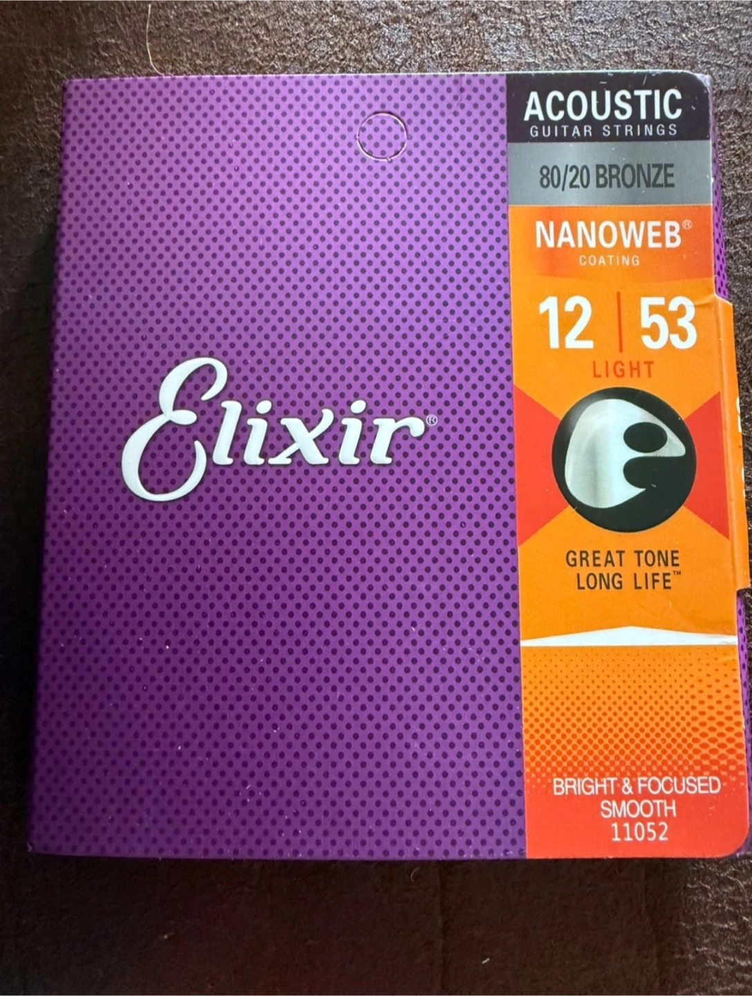 Selling a brand new, unopened pack of Elixir Nanoweb Coated Acoustic Guitar Strings (Light gauge: 12–53). • 80/20 Bronze for a bright and focused tone • Nanoweb coating for a smooth feel and extended life • String gauges: .012, .016, .024, .032, .042, .053 • Model: 11052