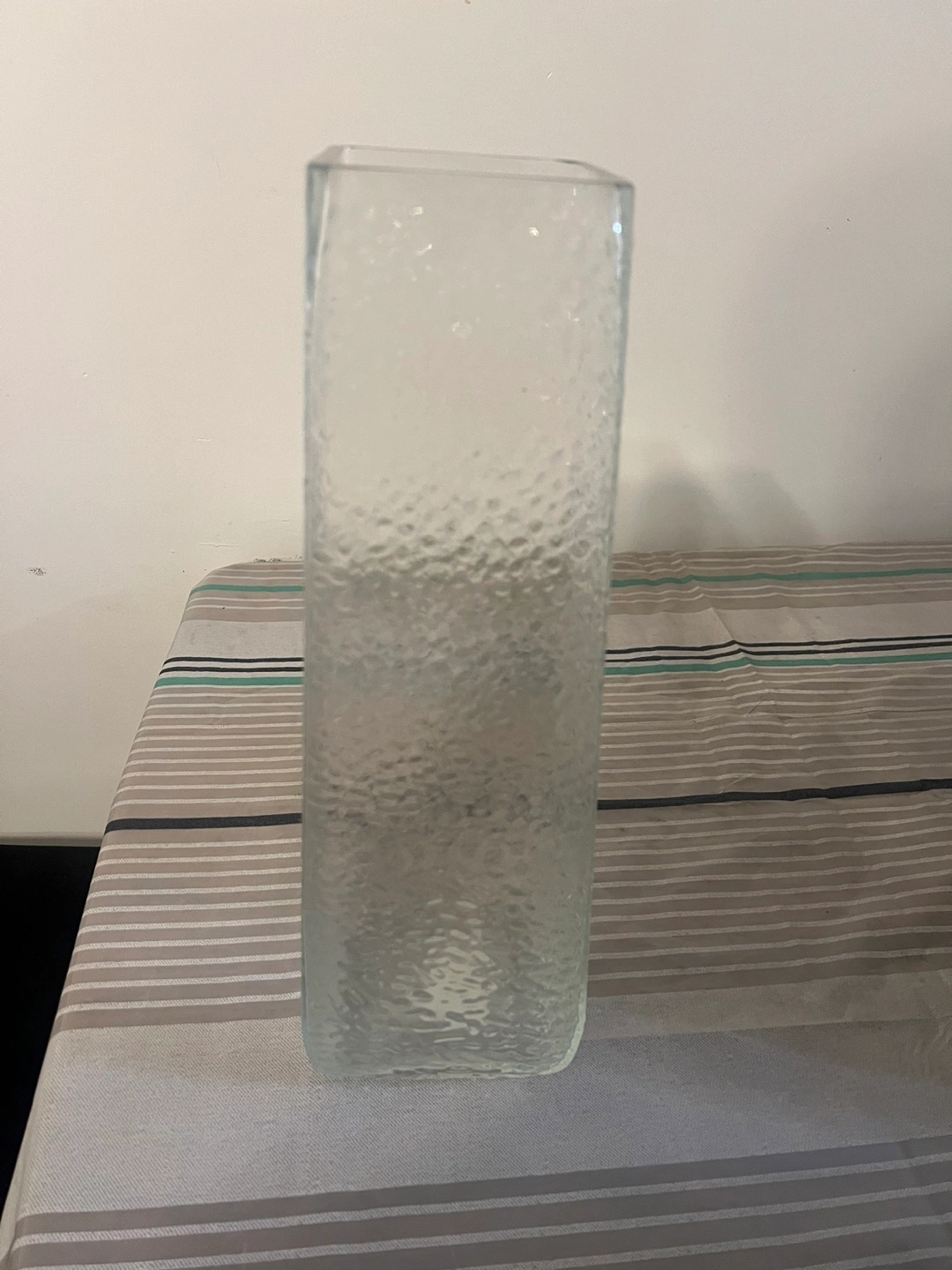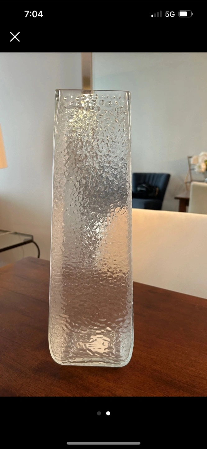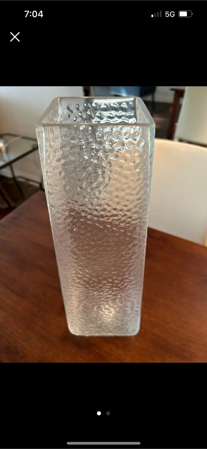 Selling a textured glass vase, perfect for displaying flowers or as a decorative piece in your home. Moving sale.