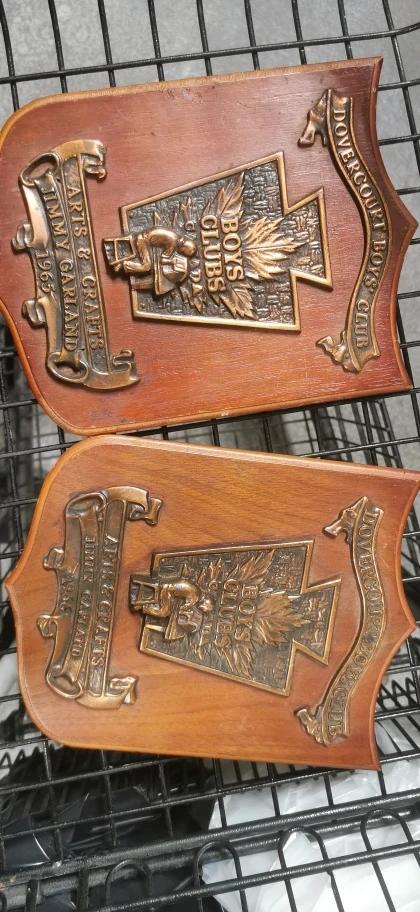Selling a pair of vintage Dovercourt Boys Club plaques. These feature the Arts & Crafts Jimmy Garland 1963 design. Great for collectors or anyone interested in local history!