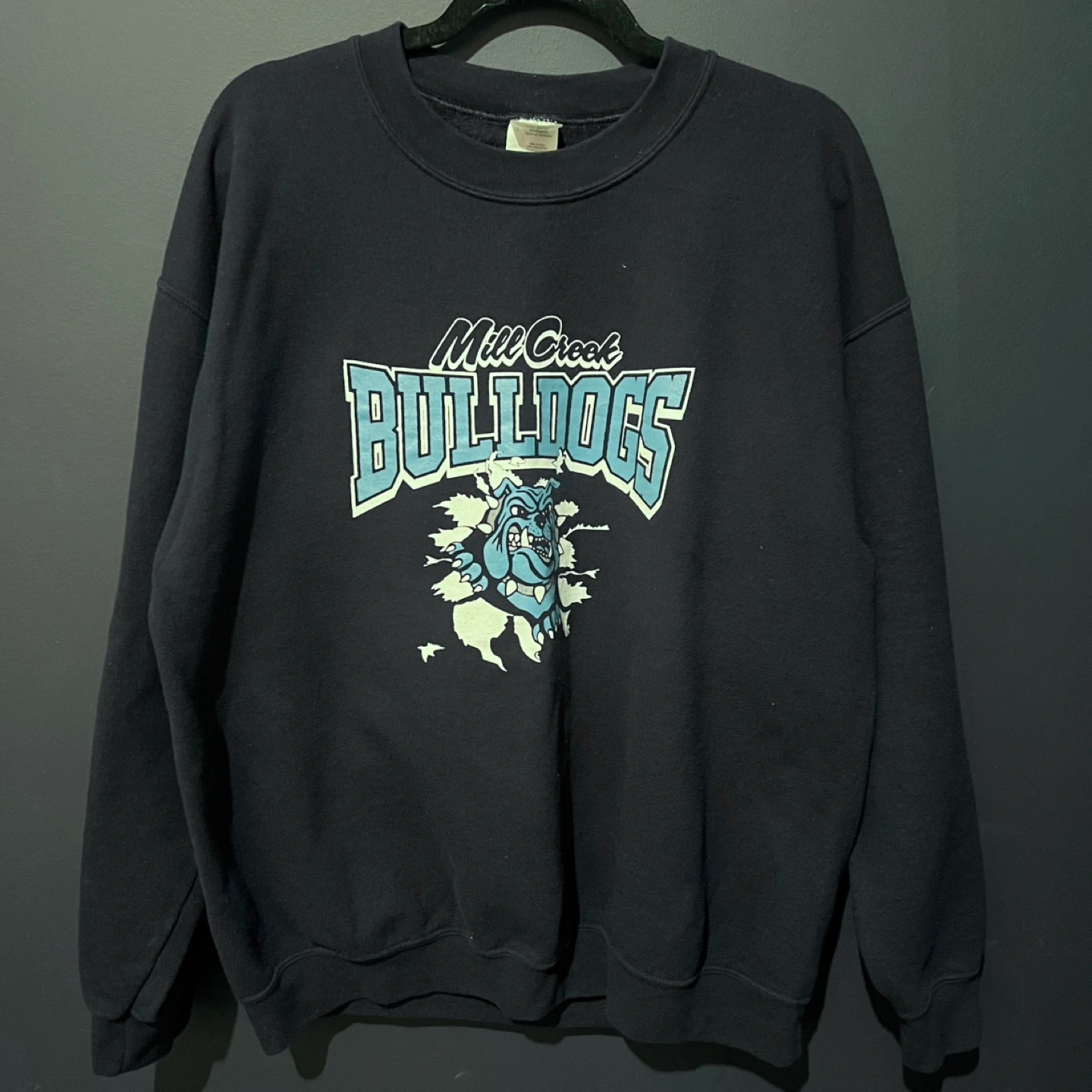 97Gildan sweatshirt featuring the Mill Creek Bulldogs logo. It's in great shape and ready for a new home! Gildan Heavy Blend.