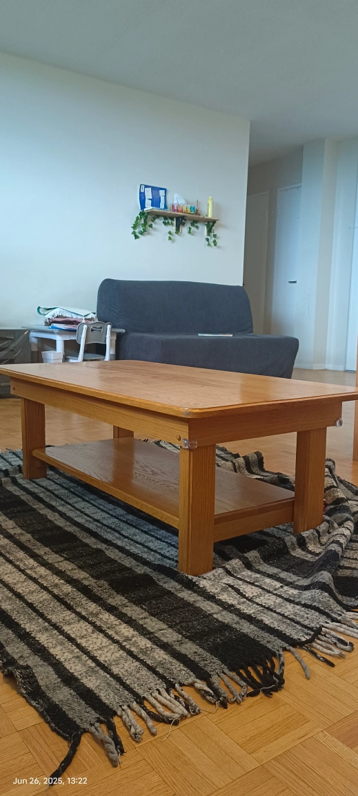 247Selling a used wooden coffee table! It has a shelf underneath for extra storage. There are some signs of use, including some marks and scratches on the surface, as you can see in the pictures p/s: check my other listings. Buy 2, get 10% off. Buy 3, get 15% off. Buy 4+, get 20% off. 😉