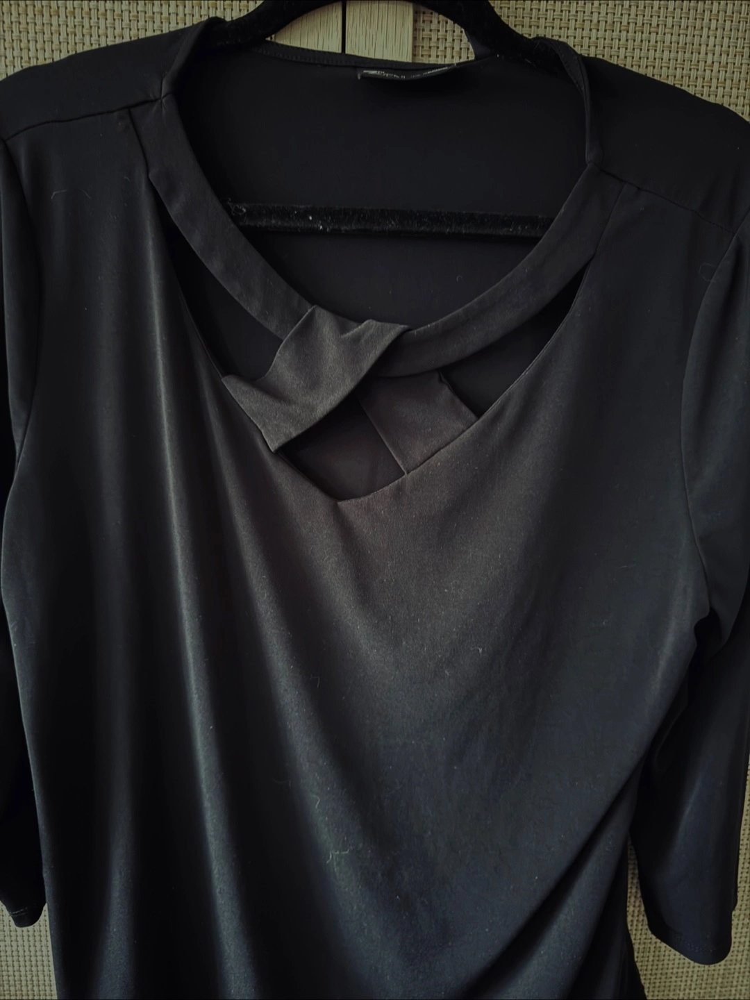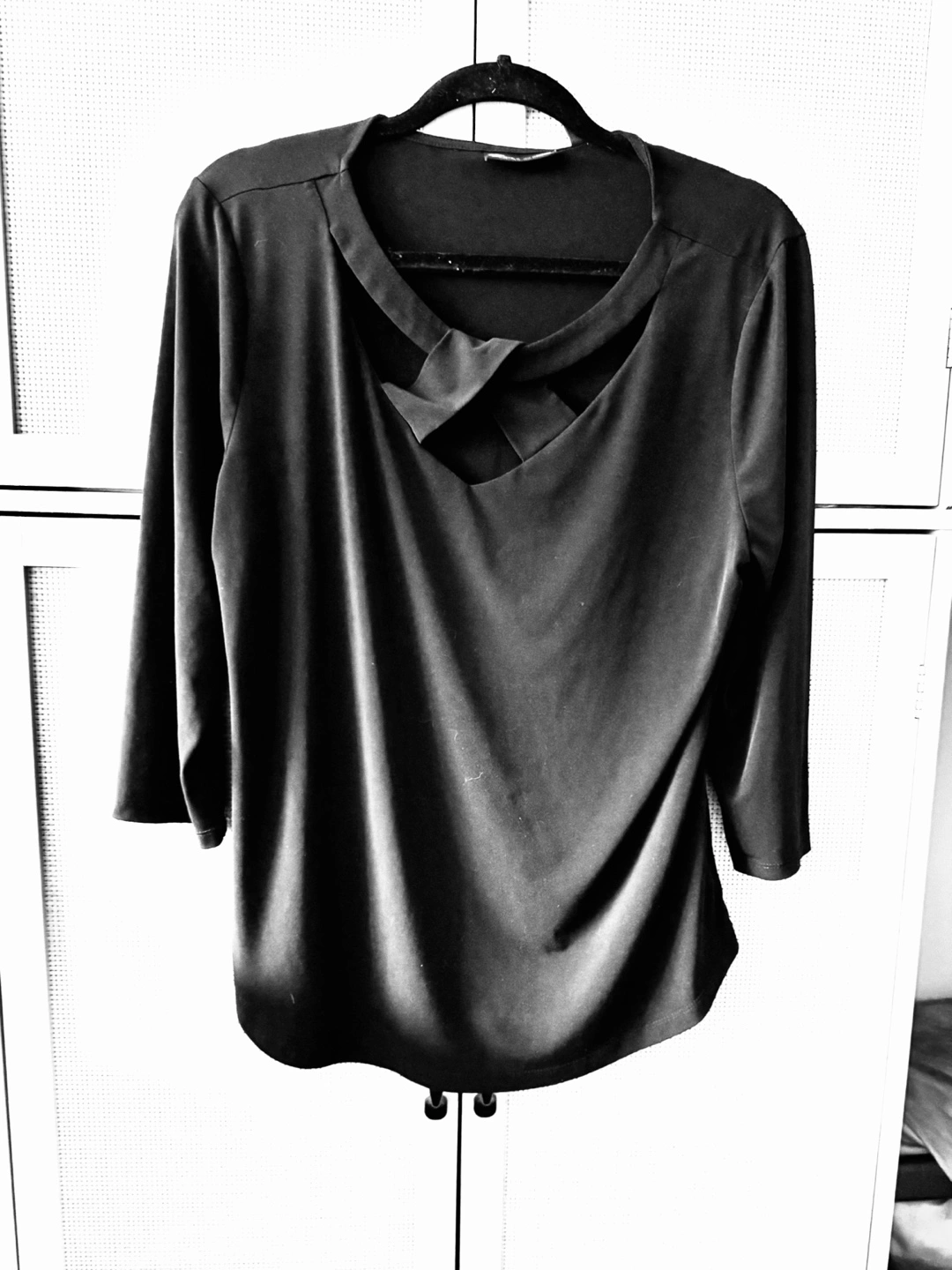 A simple black long sleeve top with a unique neckline detail. It's in good condition and ready for a new home! Perfect for layering or wearing on its own