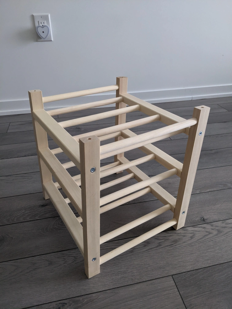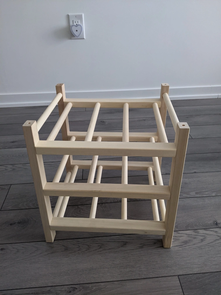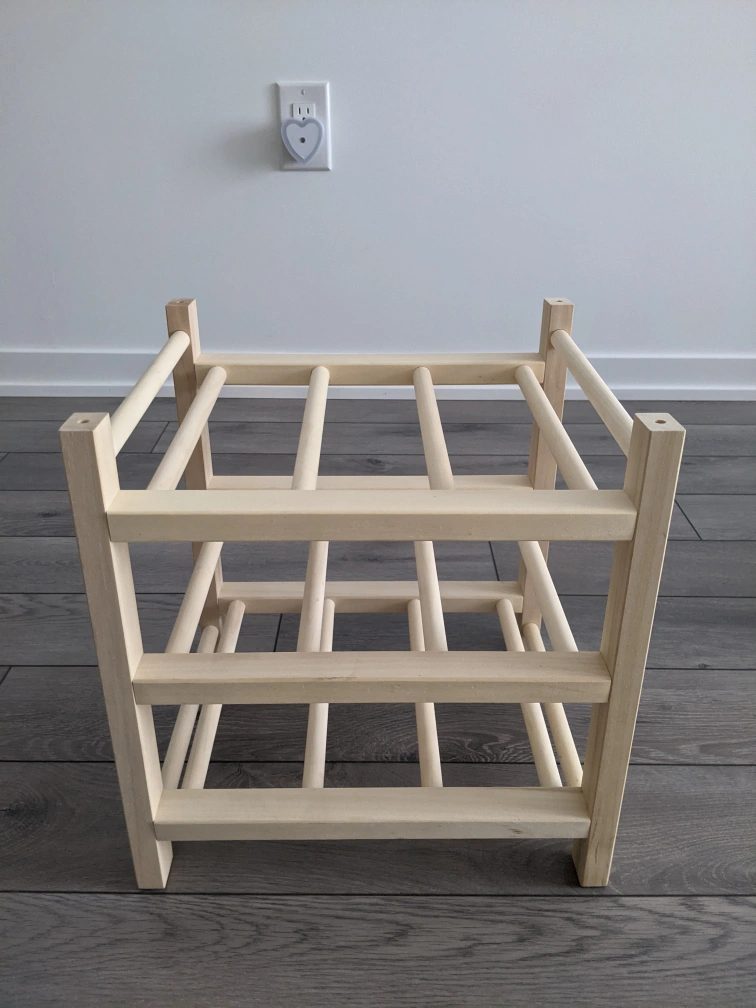 Organize your wine collection in style with this brand new IKEA HUTTEN 9-bottle wine rack, made of solid wood. Its simple design adds a touch of elegance to any room. Perfect for countertops or as a compact storage solution. This rack is sturdy and ready to showcase your favourite wines.