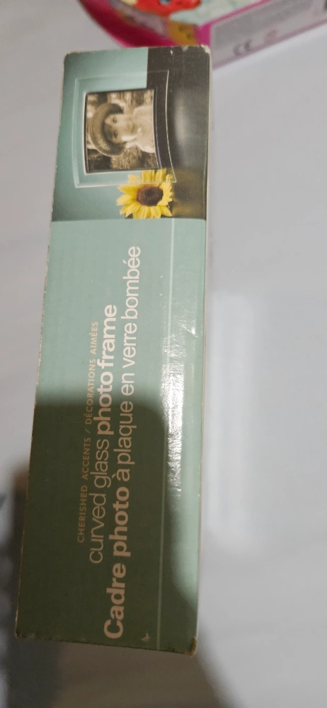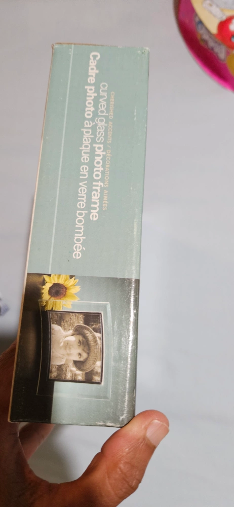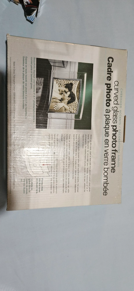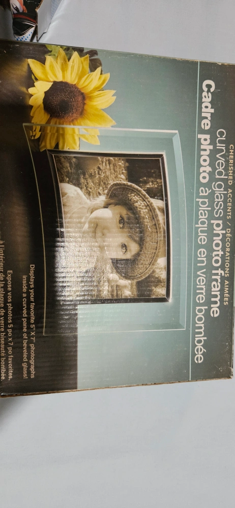 Selling a Cherished Accents curved glass photo frame! It displays your favourite 5" x 7" photographs inside a curved pane of beveled glass. Box included!