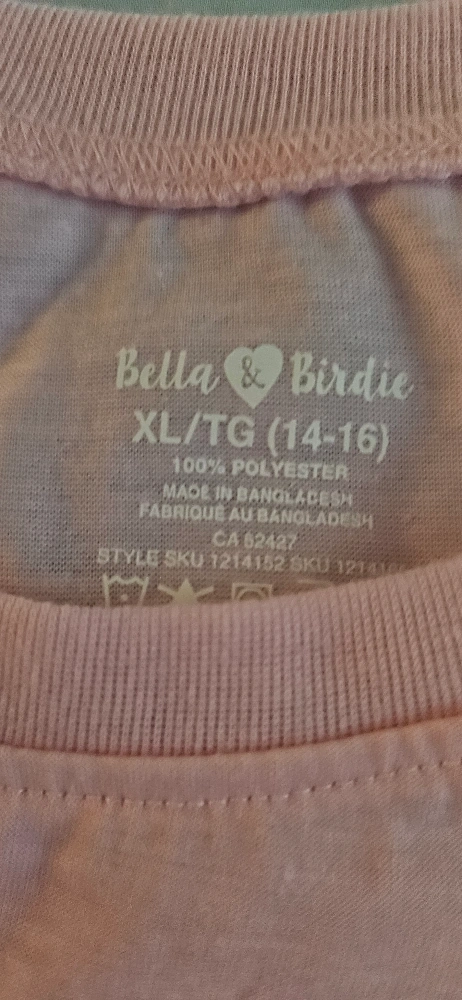 Bella & Birdie XL/TG (14-16) Girls Pink T-Shirt