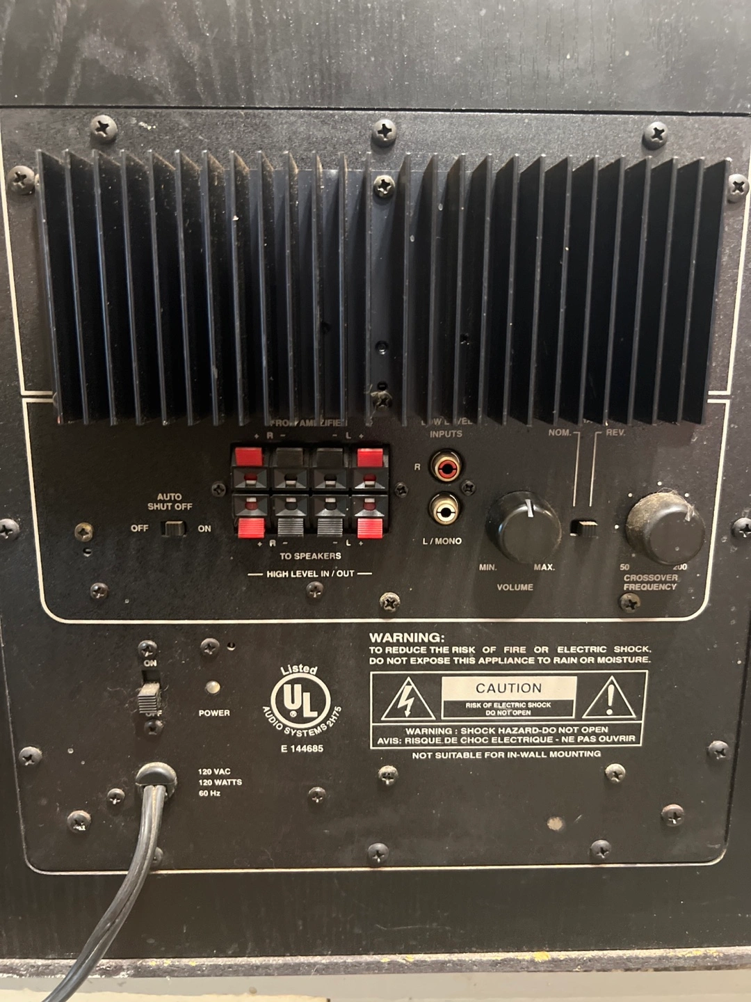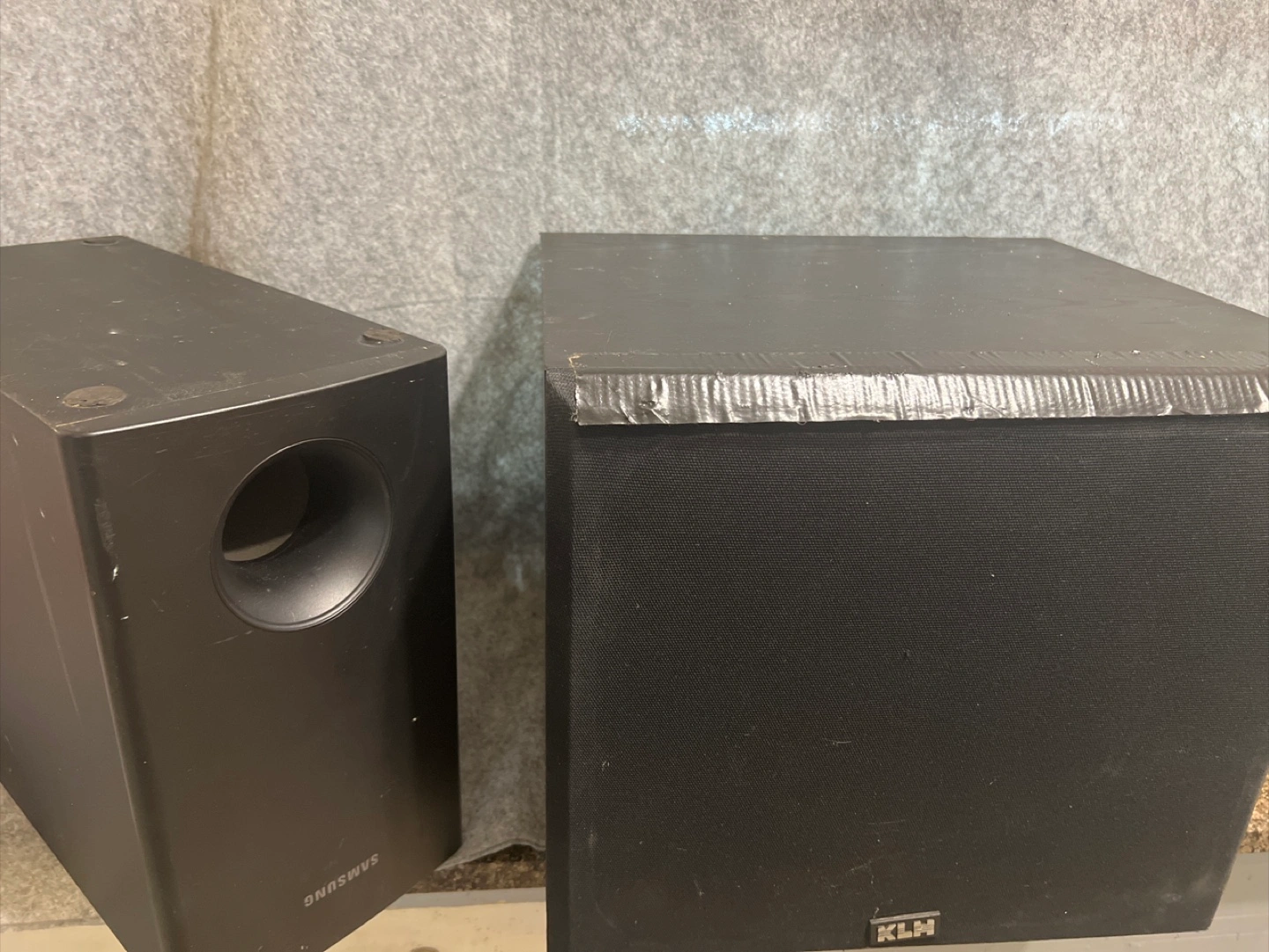 1000+One powered KLH 50 watt sub and passive Selling Samsung subwoofer speaker system, model PS-WTZ325. It has an impedance of 3Ω. Please see photos for condition. Both for $40.