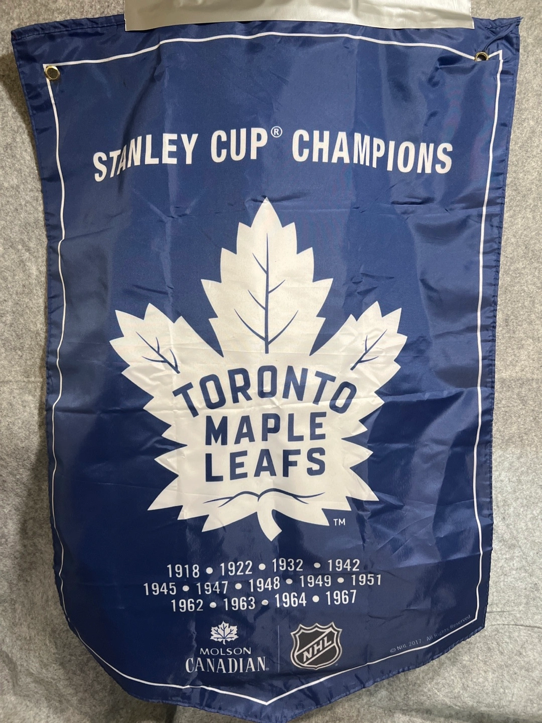 1000+22 “ x 32 “ Show your Leafs pride with this Stanley Cup Champions banner! It features the iconic Maple Leafs logo and lists the years they won the Stanley Cup. A great addition to any fan's collection!