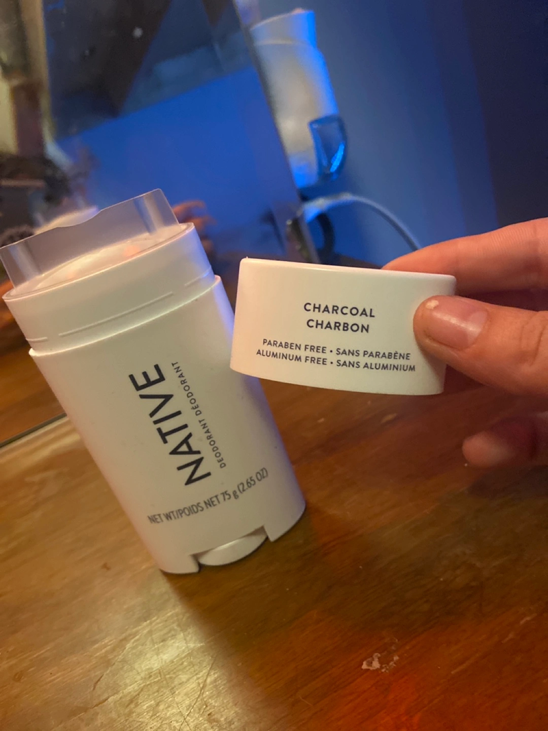 Native deodorant in the Charcoal scent. It's paraben-free and aluminum-free, so it's gentle on the skin. The deodorant is 75g (2.65 oz) got for $15 at shoppers