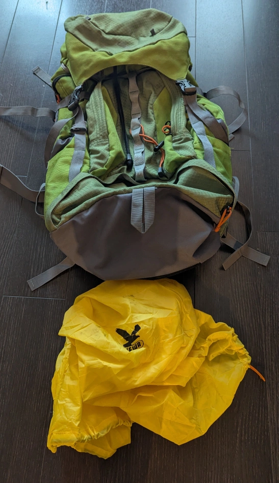 Selling a Salewa hiking backpack in green! It's in good condition and ready for your next adventure. Padded shoulder and waist straps. Comes with a yellow rain cover to keep your gear dry in wet conditions.