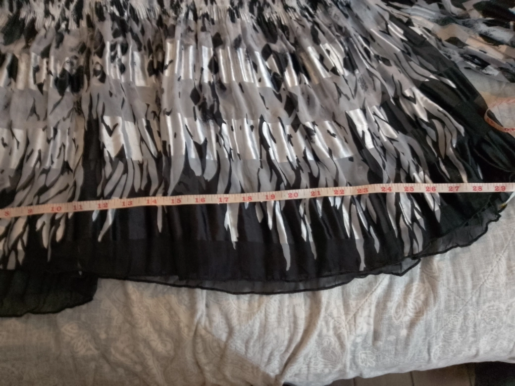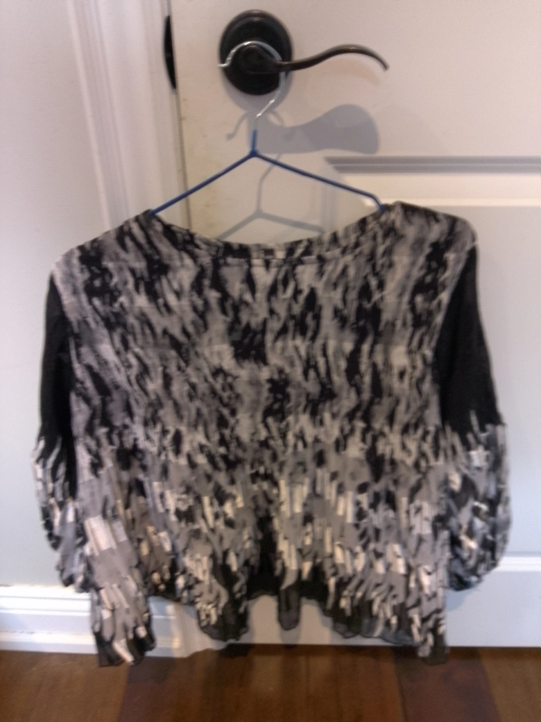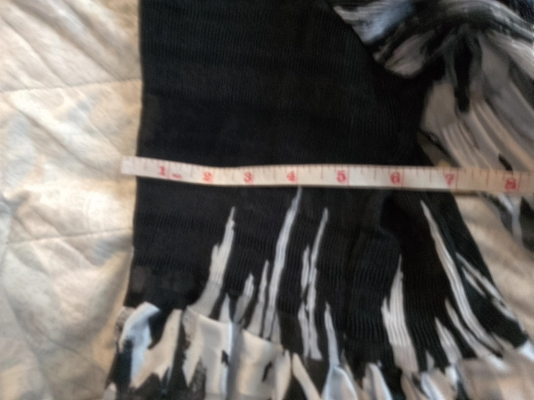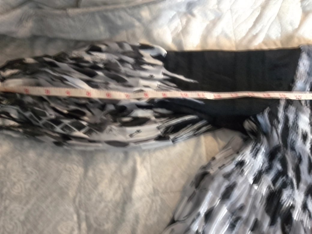 Here's a stylish top with a unique black and white pattern! It's in great condition and ready for a new home. Ask me questions if the measurements are unclear from the photos.
