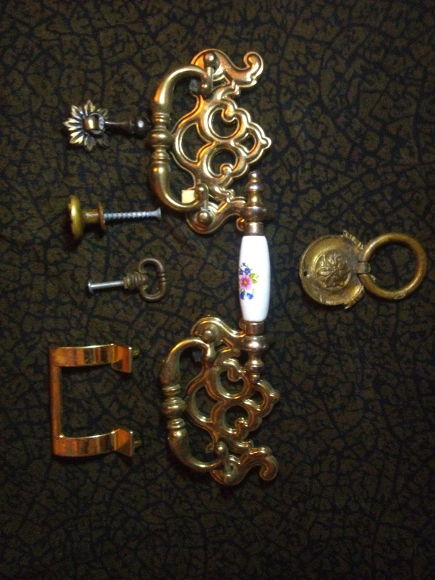 . Includes ornate pulls, knobs, and,, door knocker pieces. Great for restoration projects or adding a unique touch to your furniture!