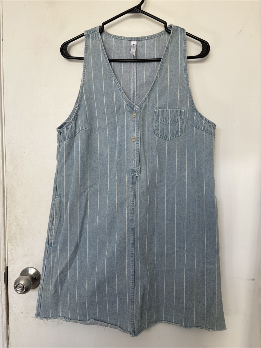 Cute denim dress with a striped pattern! It's a size small and in great condition. Perfect for a casual day out or layering with a sweater when it gets cooler