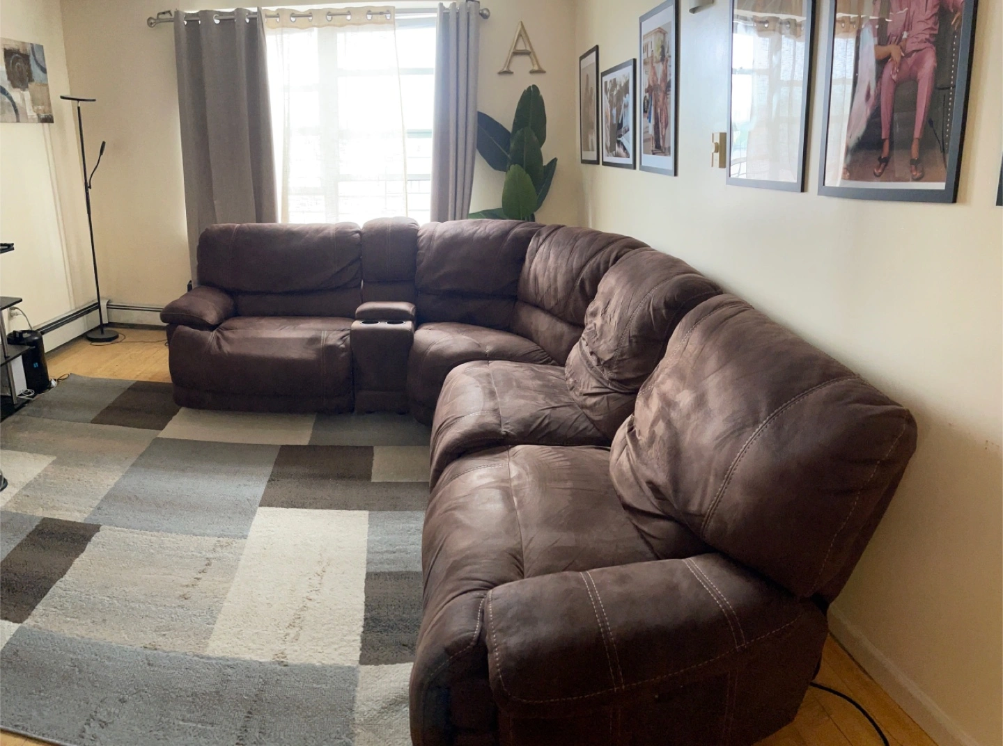 Brown Reclining Sectional Sofa with Console
