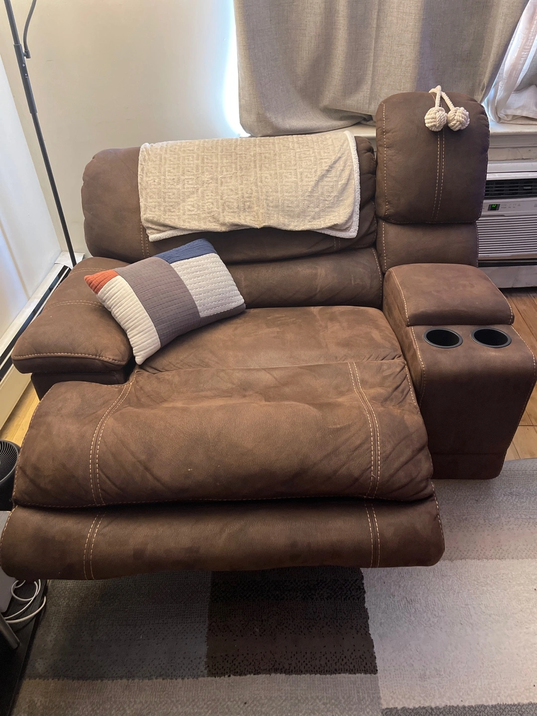 - One of the recliners has 2 cup holders and a compartment storage for added convenience